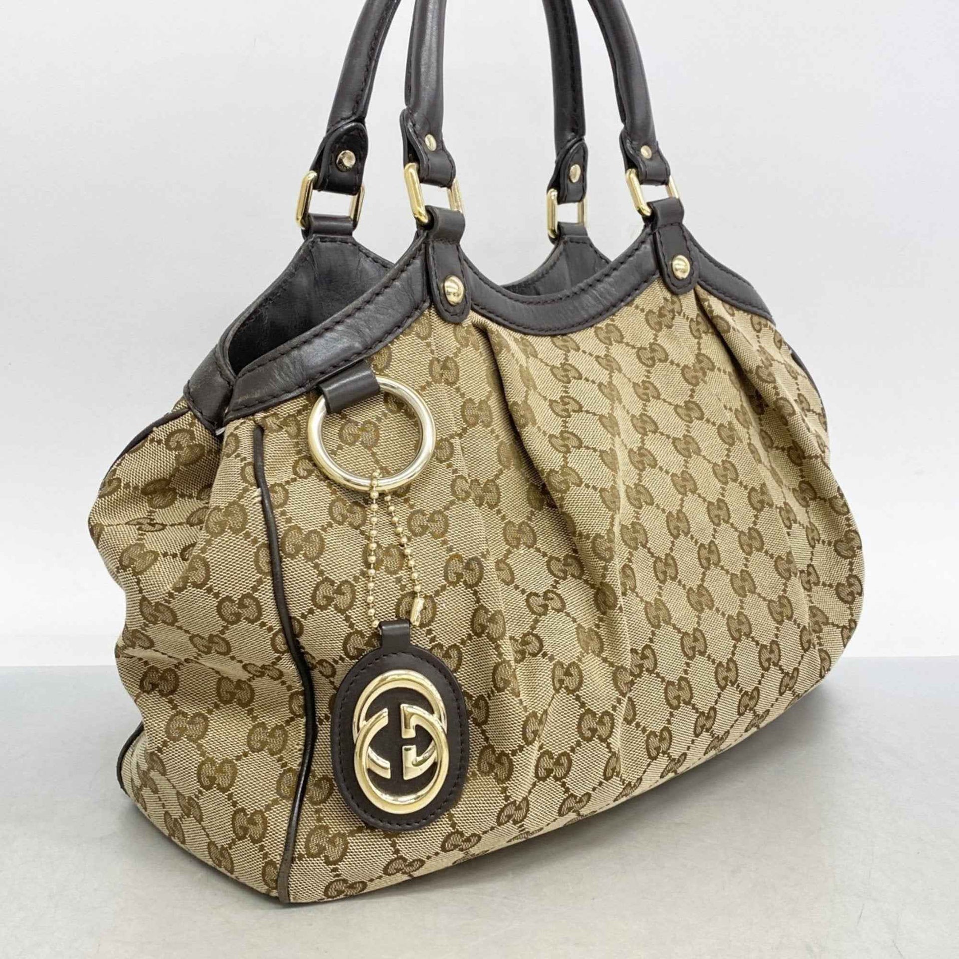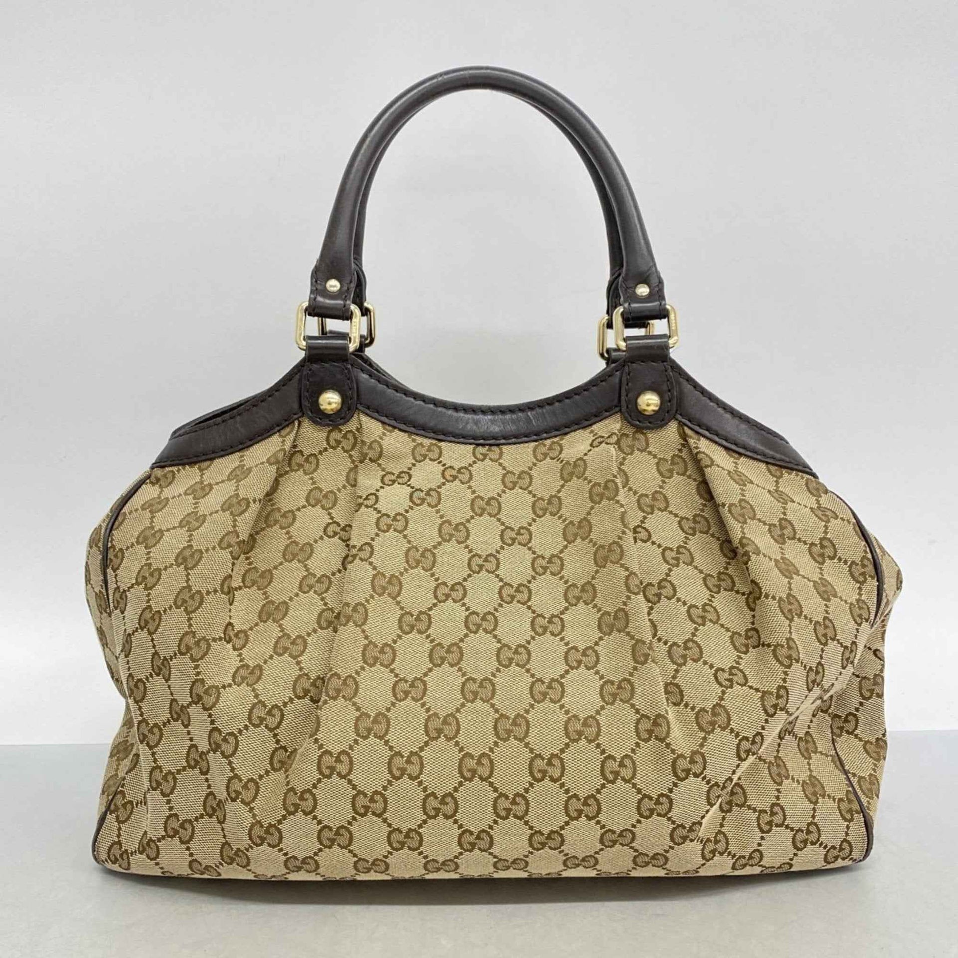 Gucci GG Canvas Handbag 211944 Beige Brown Champagne Women\'s