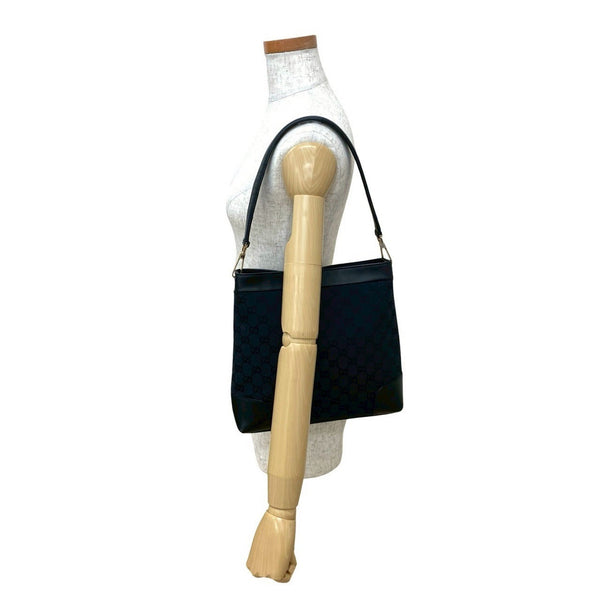 GUCCI GG Canvas Leather Semi-Shoulder Bag Tote Handbag Black 71591
