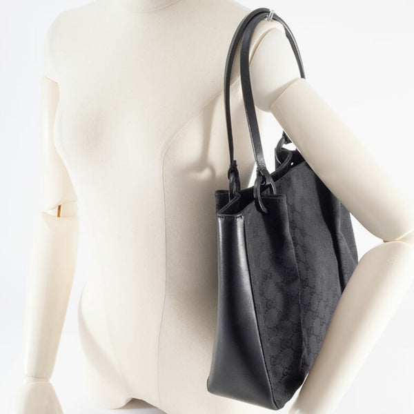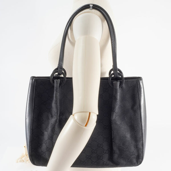 Gucci GG Canvas Leather Tote Bag 101919 Black Women\'s Handbag GUCCI