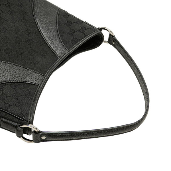 Gucci GG Canvas One-Shoulder Bag Handbag 113012 Black Leather Women\'s GUCCI