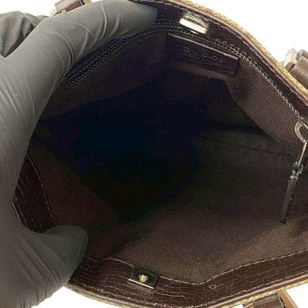 GUCCI GG Supreme logo embossed leather handbag/mini tote bag in brown and beige (43805)