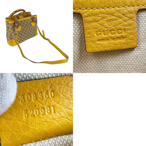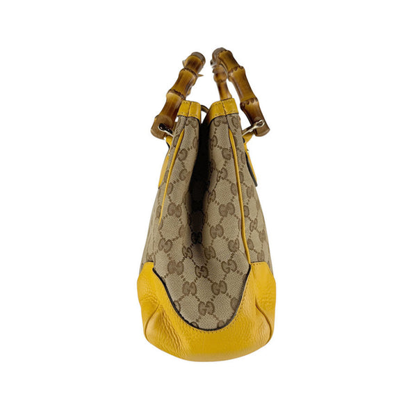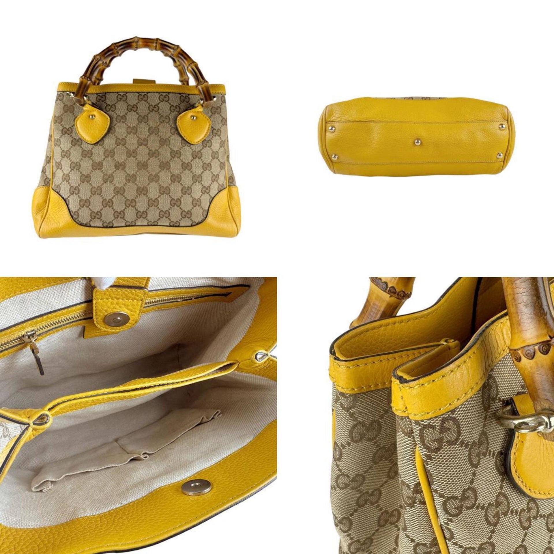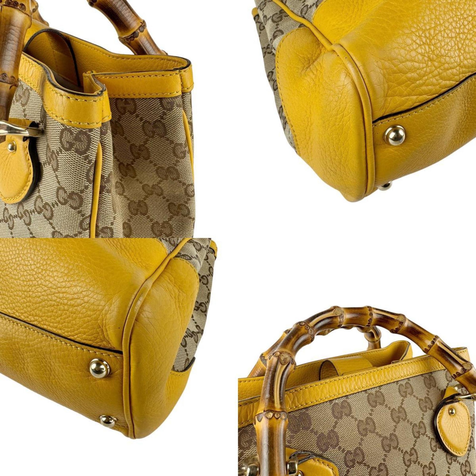 Gucci handbag/shoulder bag in bamboo and GG canvas with leather brown, yellow, light gold. Women\'s model number 308860 z6953.