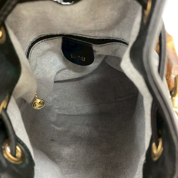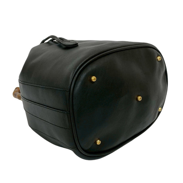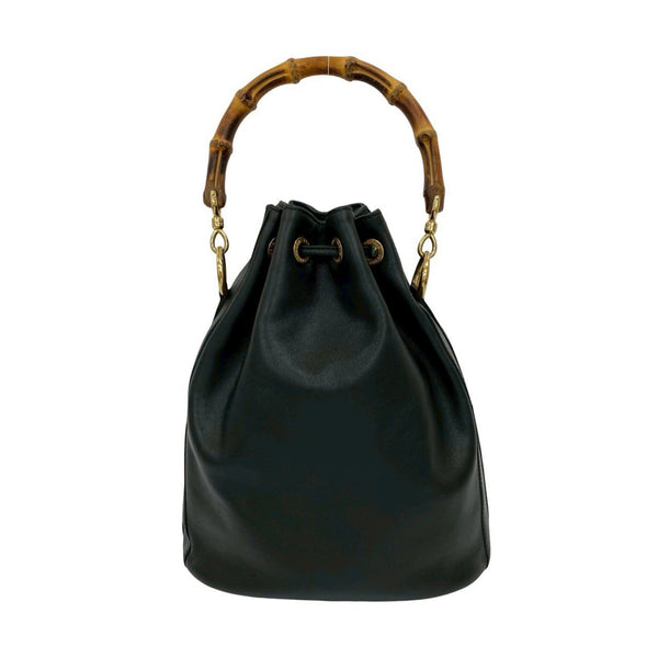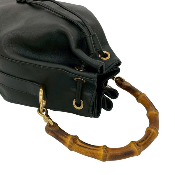 GUCCI Old Gucci Bamboo Logo Hardware Leather 2-Way Shoulder Bag/Handbag Black 261-10
