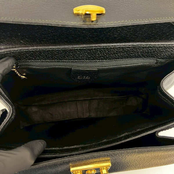GUCCI Old Gucci Vintage Bamboo Ladylock Leather Handbag in Black 33787