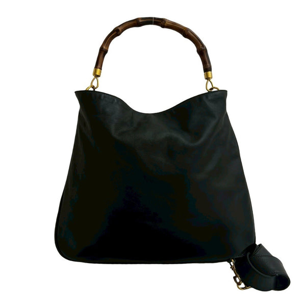 GUCCI Old Gucci Vintage Bamboo Leather 2-Way Handbag/Shoulder Bag, Black, 29581