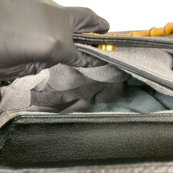 GUCCI Old Gucci Vintage Bamboo Leather Handbag Tote Bag Black 41630