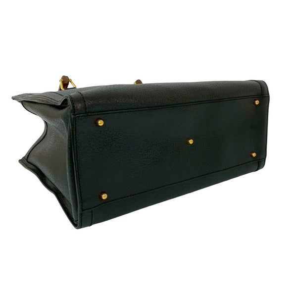 GUCCI Old Gucci Vintage Bamboo Leather Tote Bag Handbag Black 36466