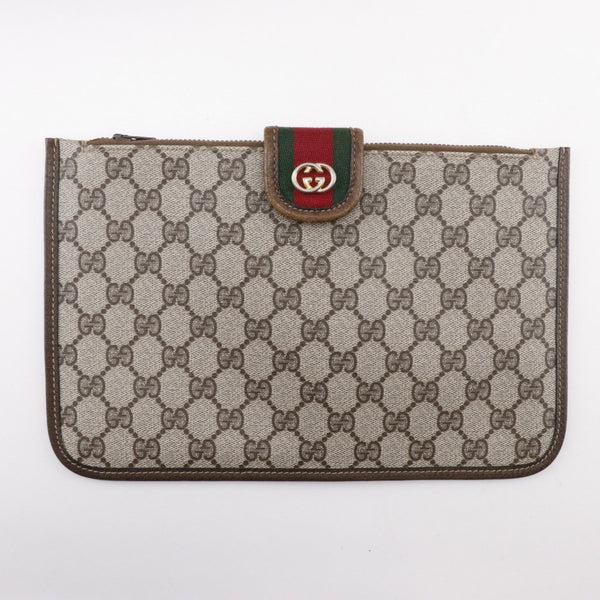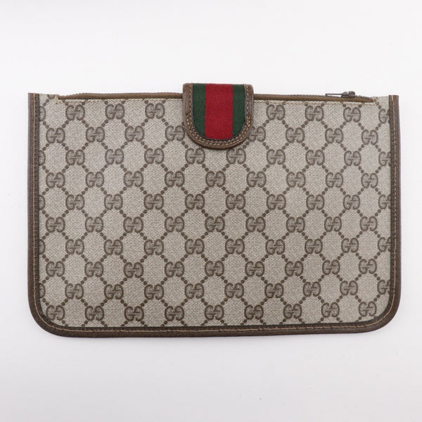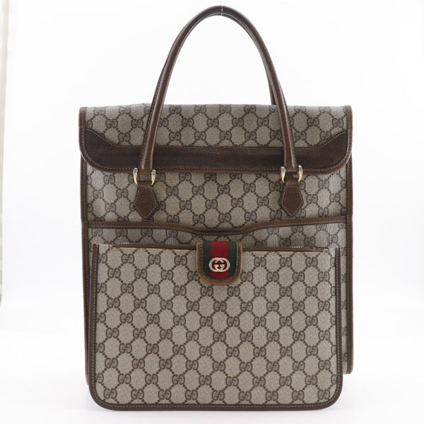 Gucci Old Handbag Sherry Line Interlocking GG 02.4139.58 PVC Brown Snap Button Unisex