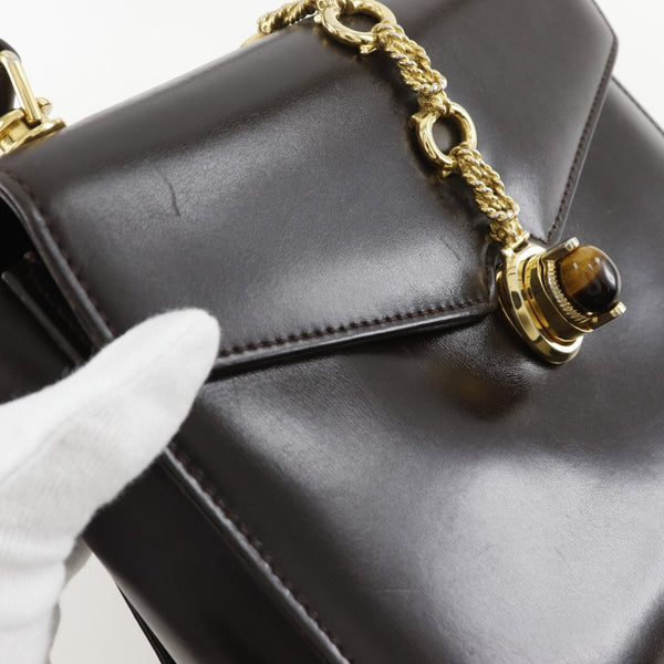 Gucci One-Handle Handbag, Old Leather, Brown, A5, Turnlock, Women\'s