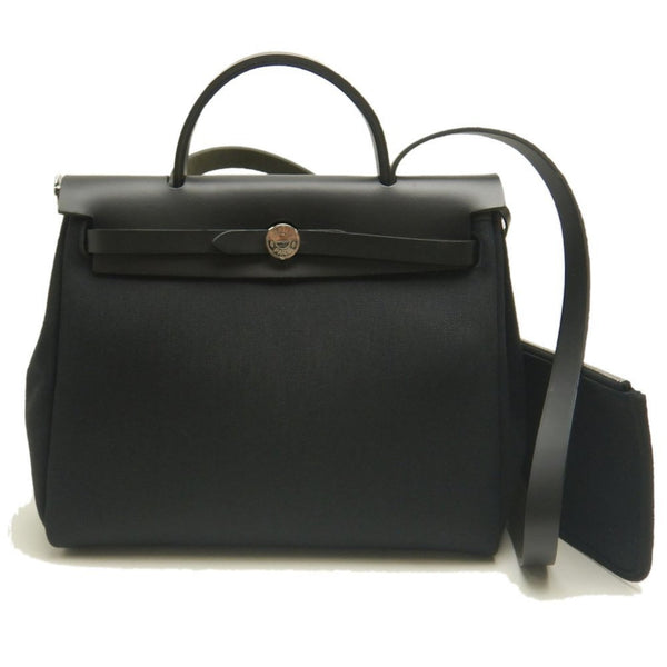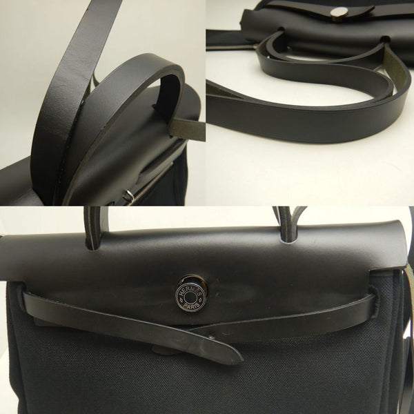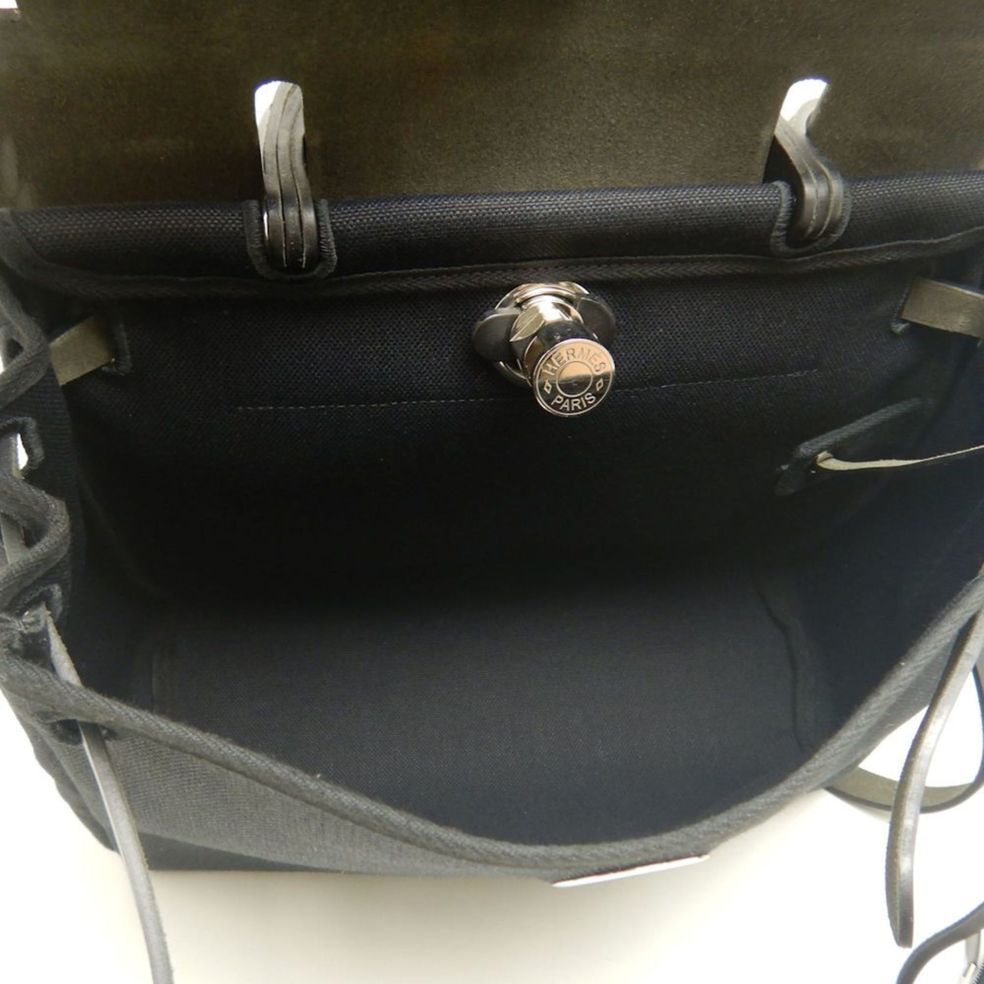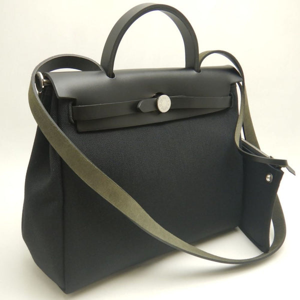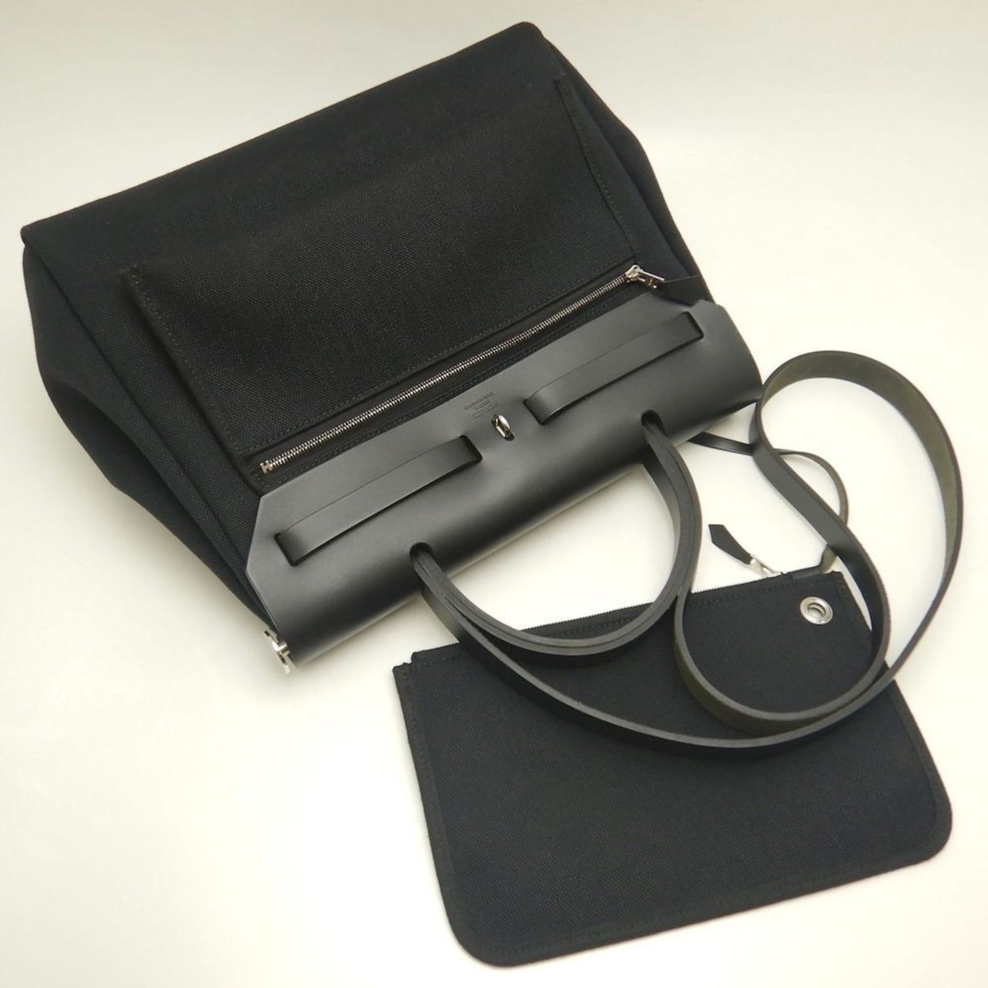 HERMES Airbag Zip PM Handbag in Toile Militaire Canvas and Leather, Black, Women\'s, 253219