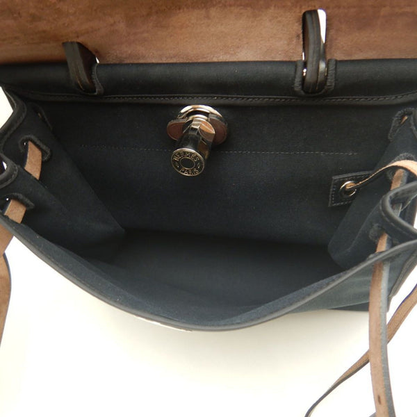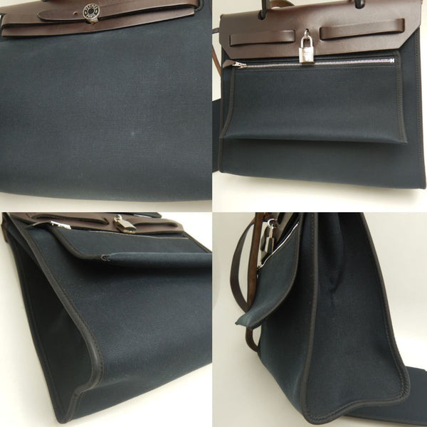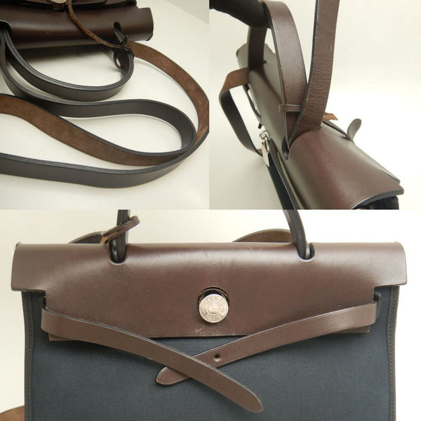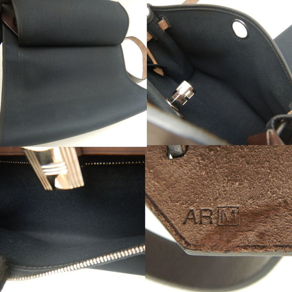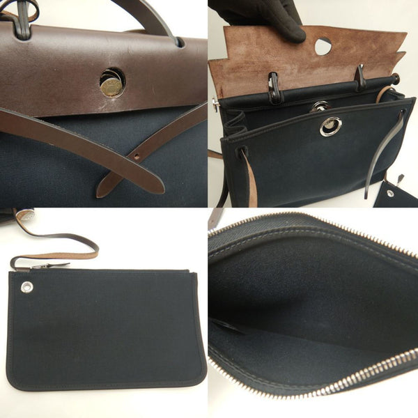 HERMES Airbag Zip PM Handbag, Toile Militaire, Vache Hunter, Cotton Canvas and Leather, Black Brown, Women\'s, 253246