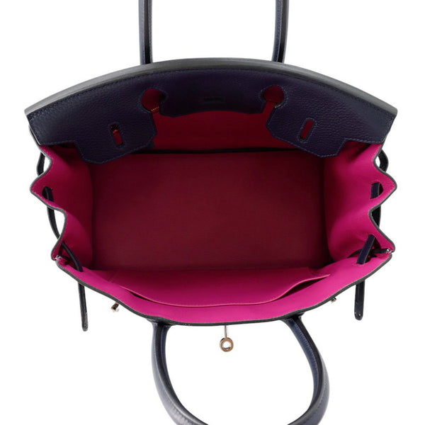 Hermès Birkin 30 Verso Bleu Nuit Rose Purple Taurillon Clemence C Stamp HERMES Handbag