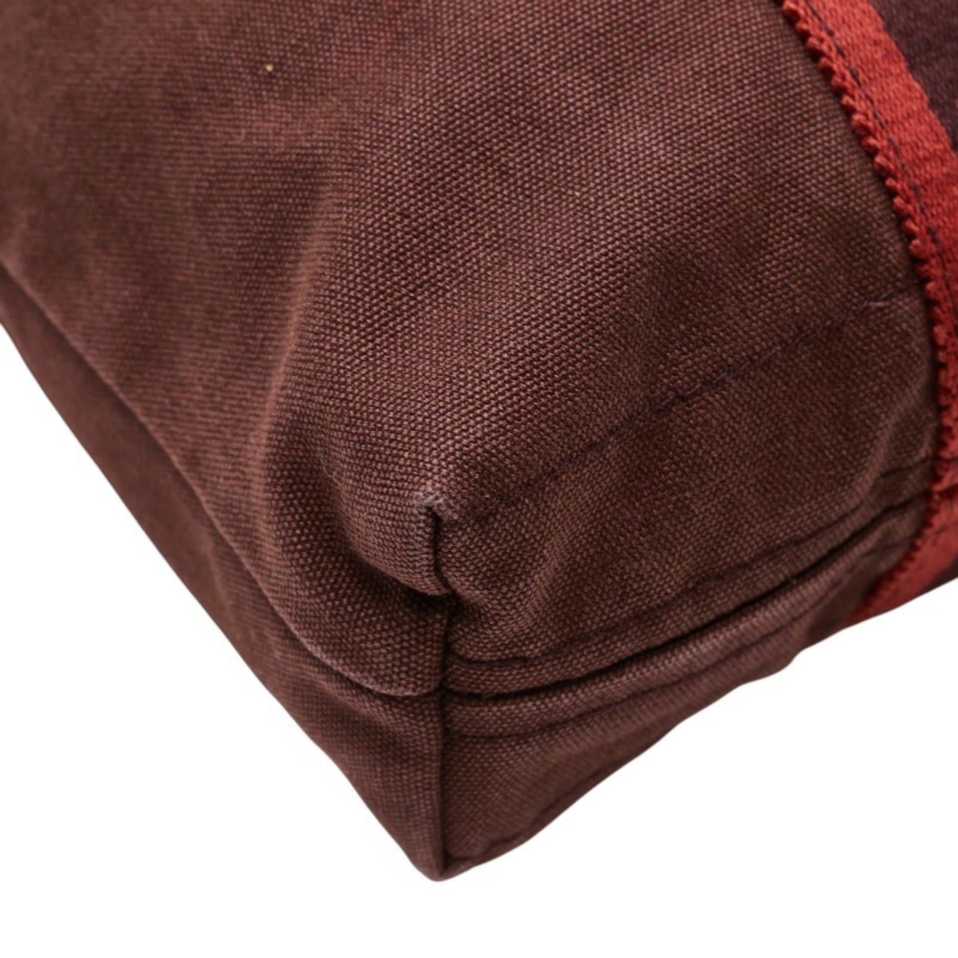 Hermes Foul Tote Cabas Bag Handbag Brown Red Canvas Women\'s HERMES