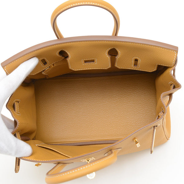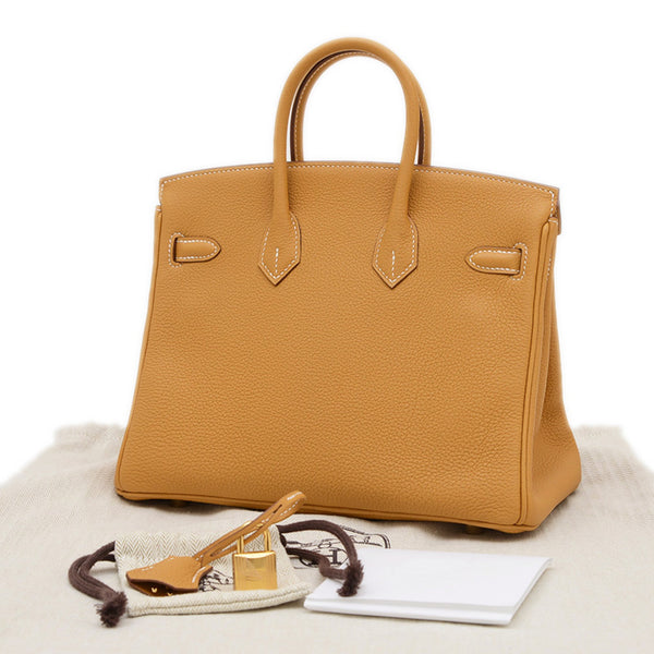 Hermes Hermès Birkin 25 Handbag, Togo Natural Sable, Gold Hardware, Double Stamp