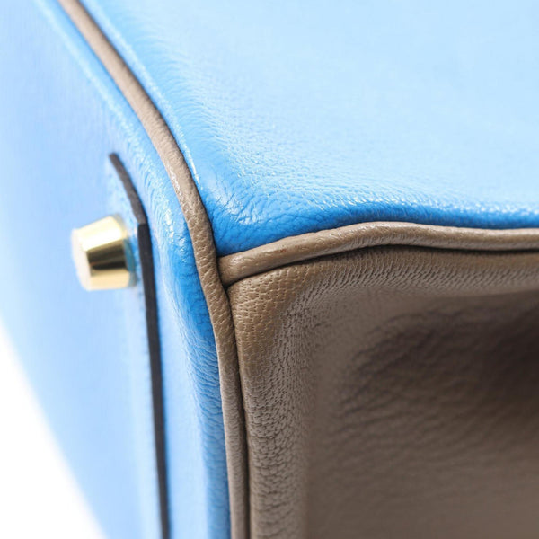 Hermes Hermès Birkin 30 Bleu Hydra Etoupe Handbag Bag Chevre Women\'s Blue/Brown