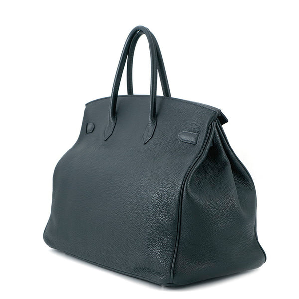 Hermes Hermès Birkin 40 Verso Vert Rousseau Colbert Togo Black Handbag with R Stamp