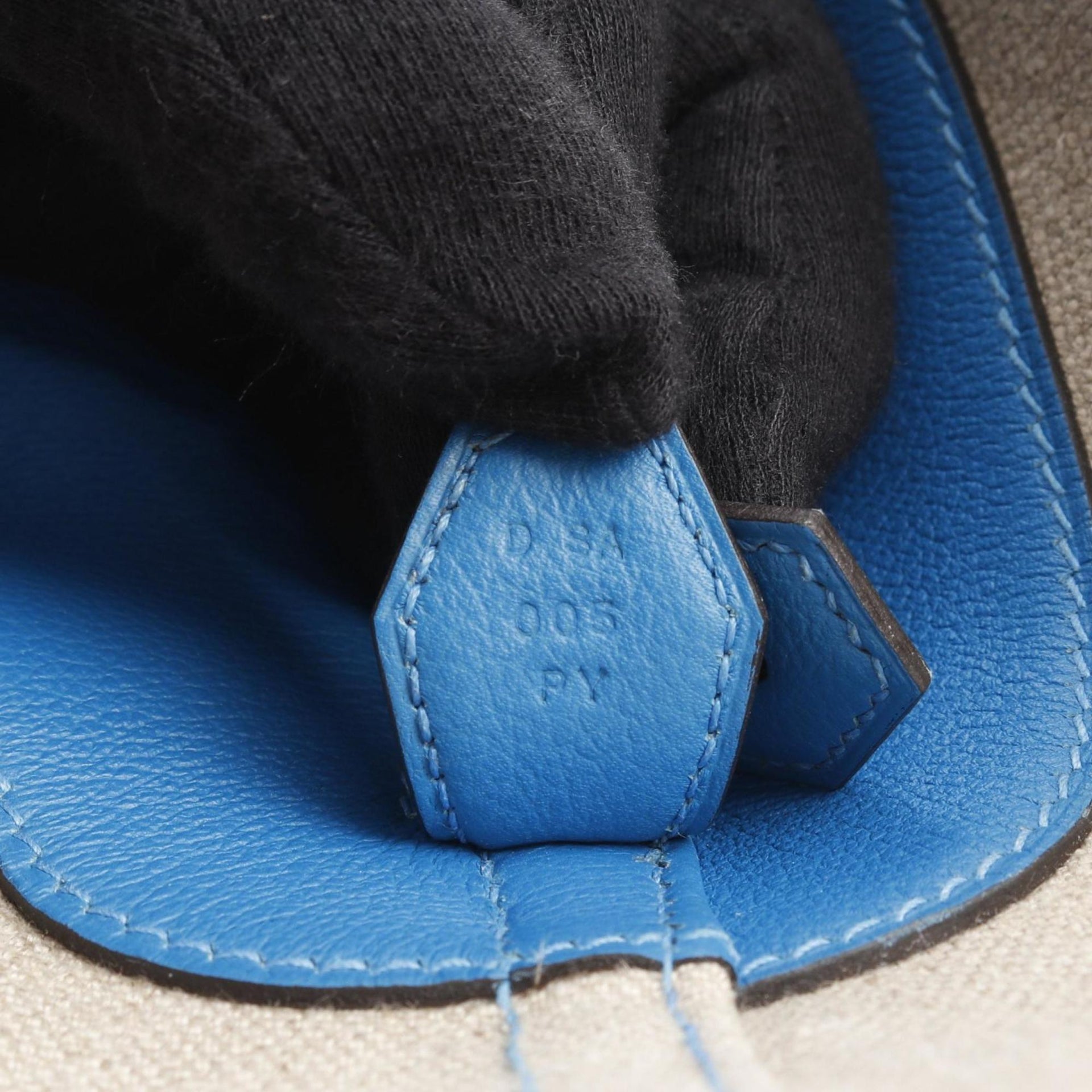 Hermes Hermès Bolide Relax 45 Handbag, Leather Canvas, Evercolor / Toile de Camp, Evercolor, Women\'s, Blue, Beige, Natural