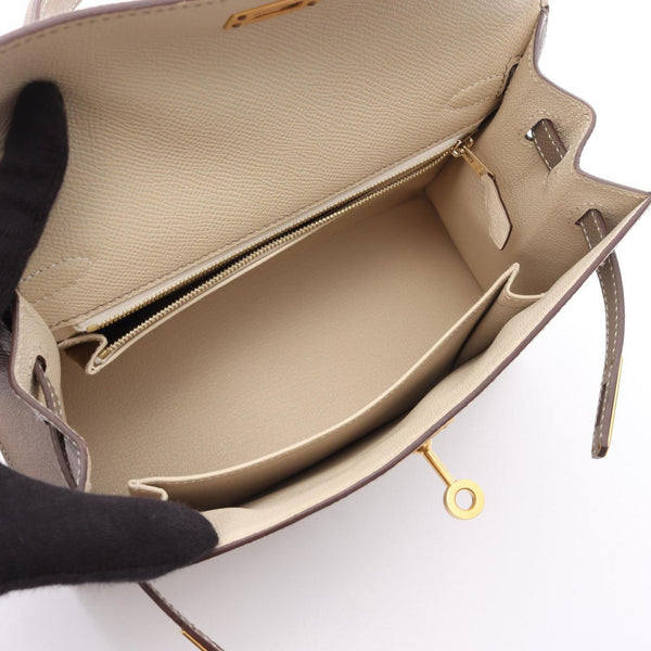 Hermes Hermès Kelly 25 Clé Etoupe handbag, leather, Epsom women\'s, ivory,