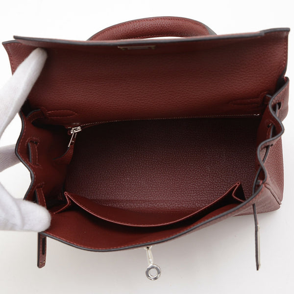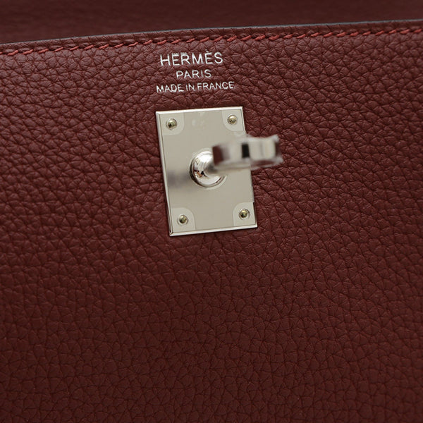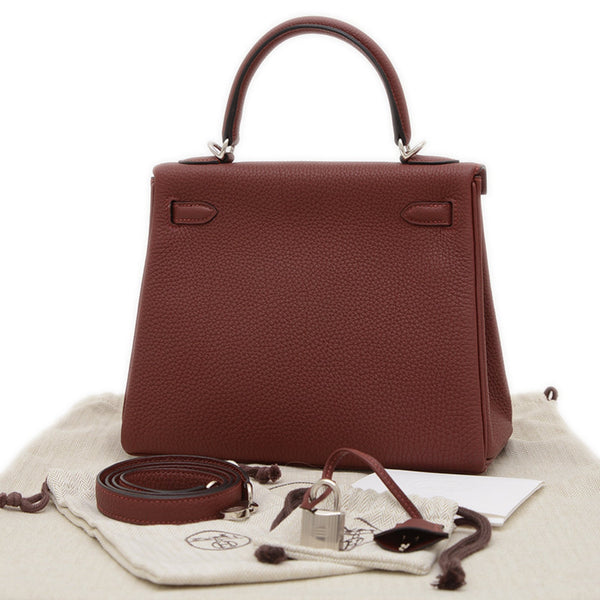 Hermes Hermès Kelly 25 Handbag, Togo, Rouge H, Silver Hardware, Double Stamp