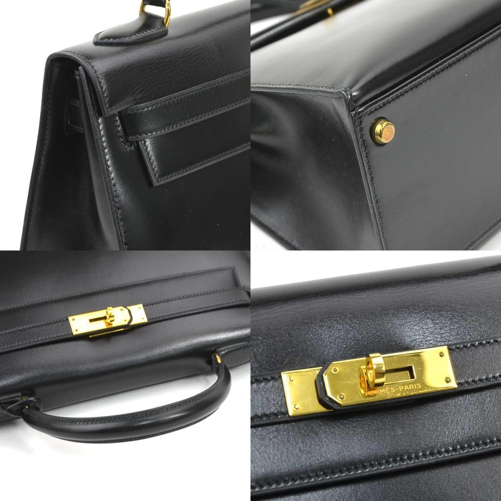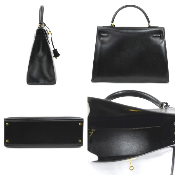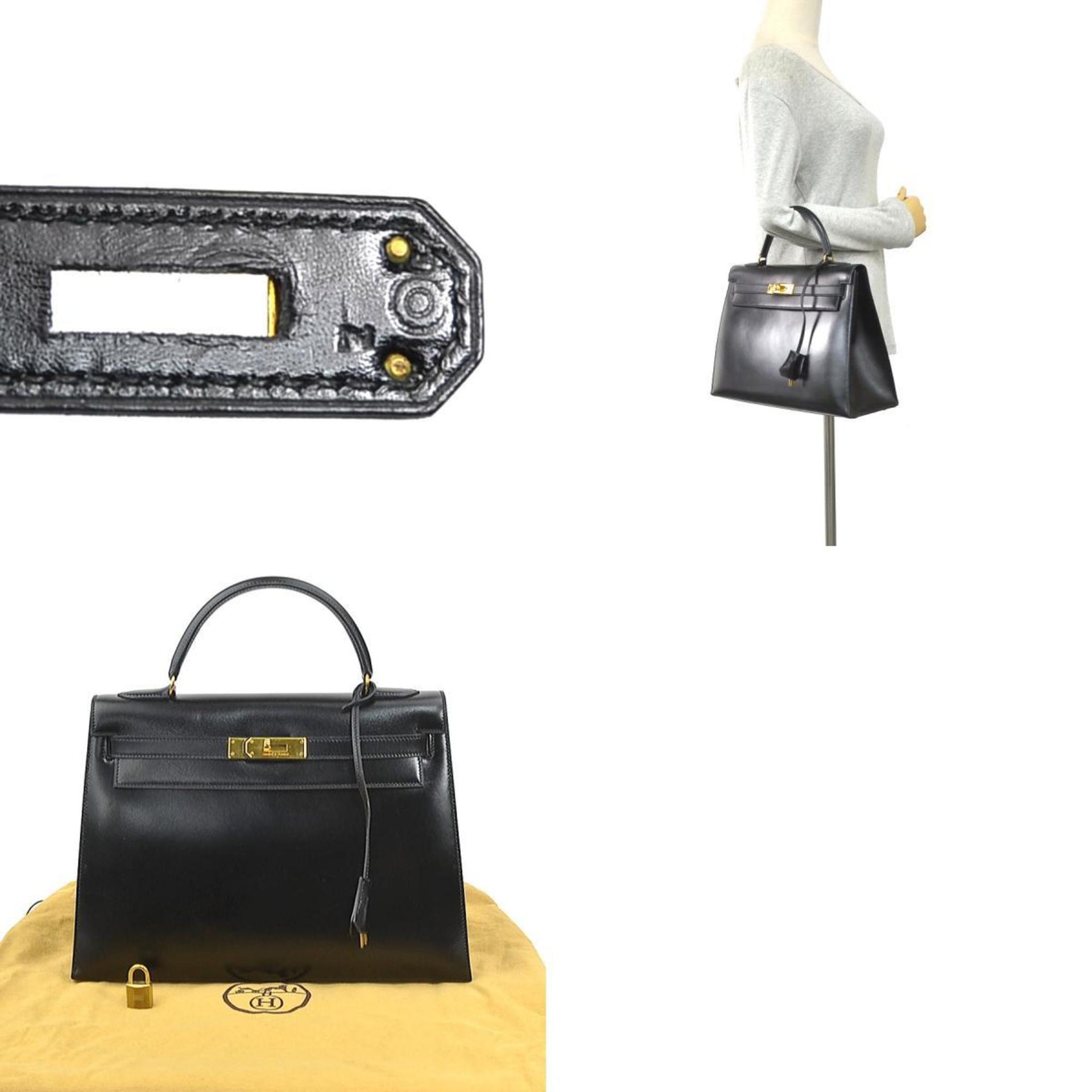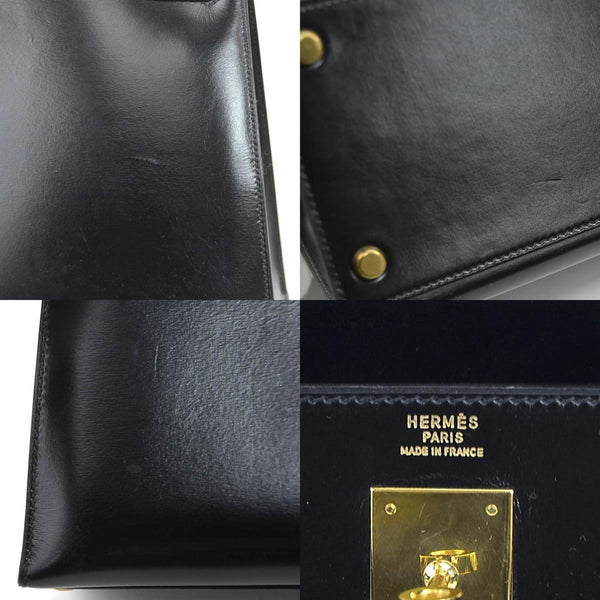 Hermes Hermès Kelly 32 Handbag, Box Calf Leather, Black and Gold, Women\'s, 90177a