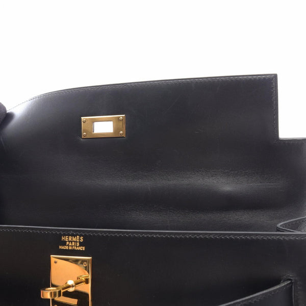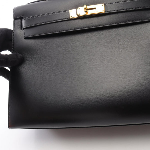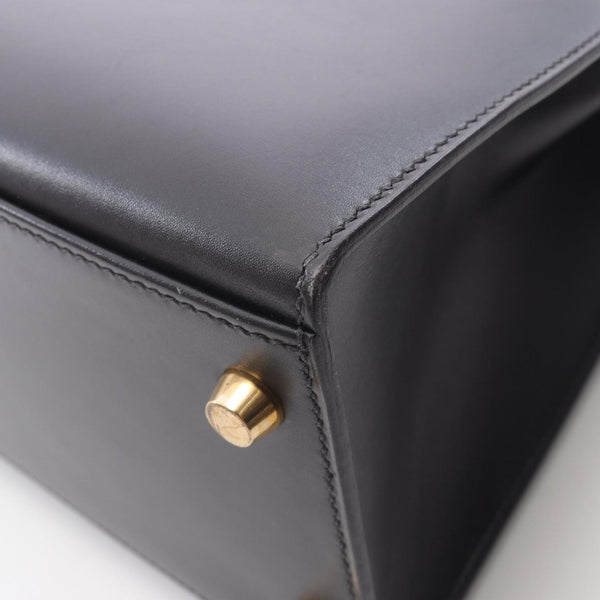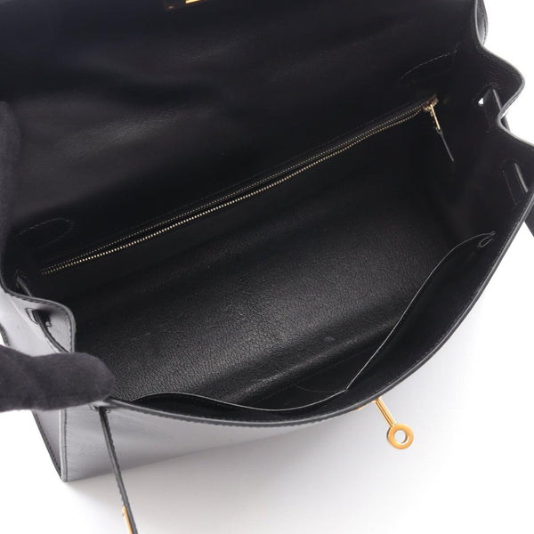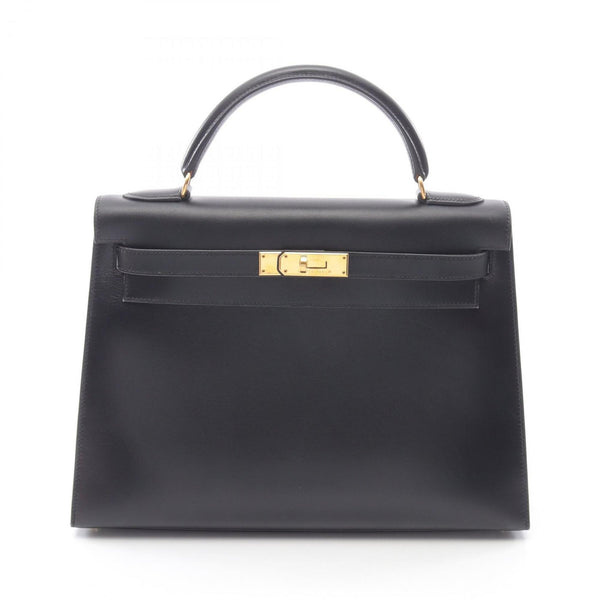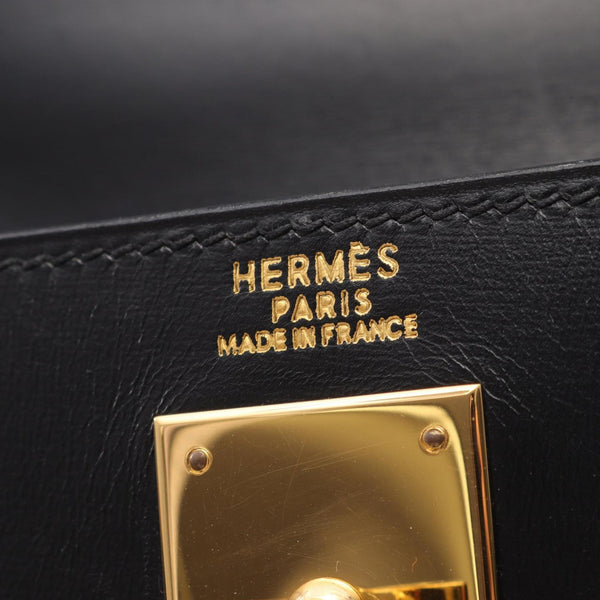 Hermes Hermès Kelly 32 handbag in calfskin box calf leather, black.