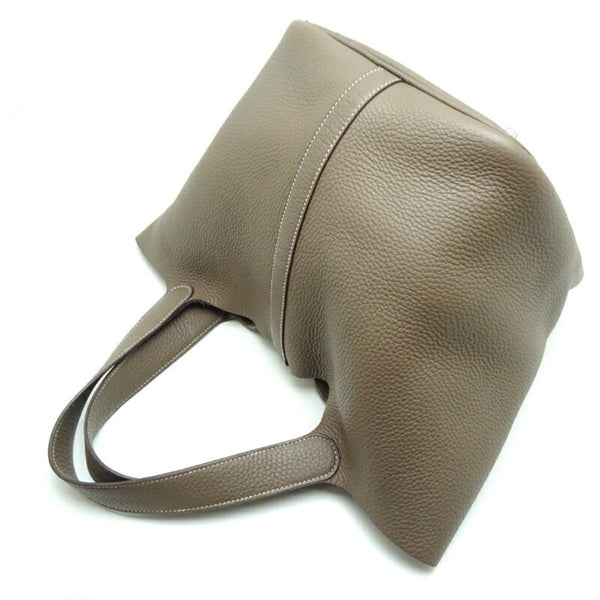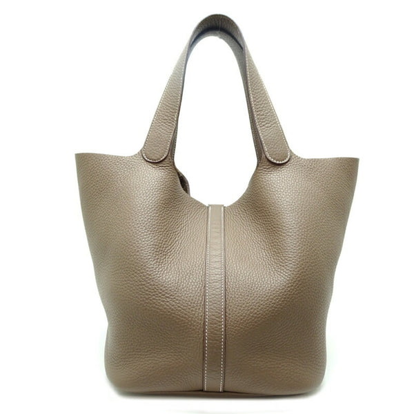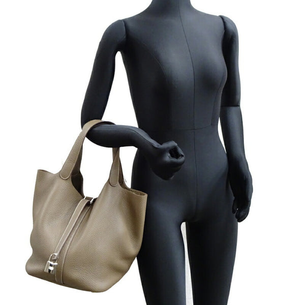 Hermes Hermès Picotin Lock GM U Stamp, Palladium (Silver) Hardware, Women\'s Handbag, Taurillon Clemence Etoupe (Beige Gray)