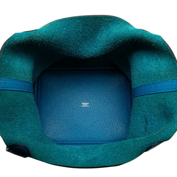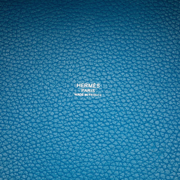 Hermes Hermès Picotin Lock MM Handbag in Blue with Silver Hardware, Taurillon Clemence Leather, Women\'s