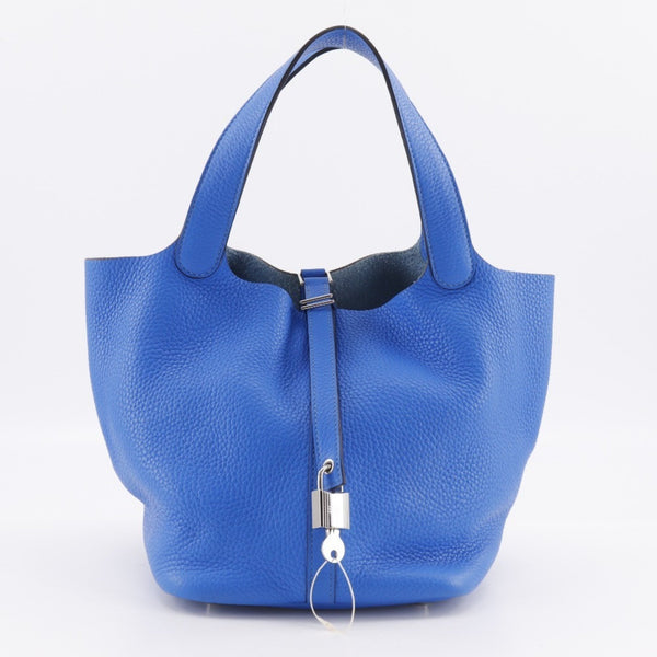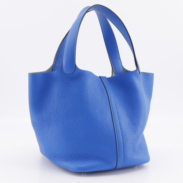 Hermes Hermès Picotin Lock MM handbag in Taurillon Clemence blue Hydra leather, 2016, blue, with A5 strap.