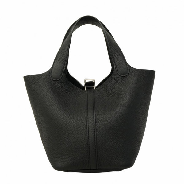 Hermes Hermès Picotin Lock PM Handbag in Taurillon Clemence Leather, Black, Double Stamped, Women\'s