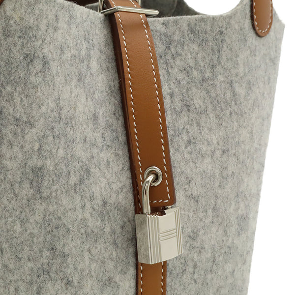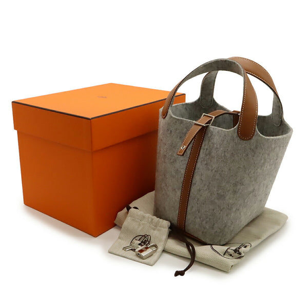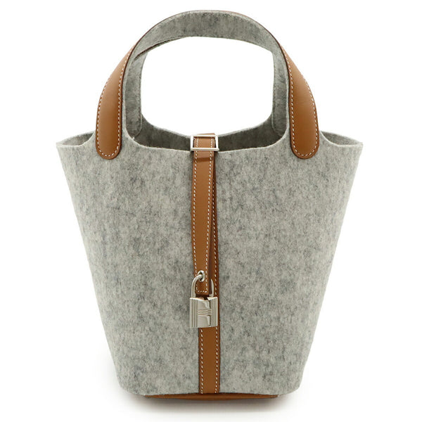 HERMES Picotin Lock PM Handbag/Tote Bag in Felt, Swift Leather, Gripere Gray, Gold with Y Stamp