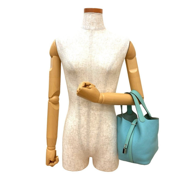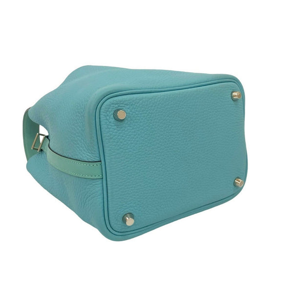 HERMES Picotin Lock PM Taurillon Clemence Leather Handbag/Mini Tote Bag, Light Blue, 35416, with X Stamp