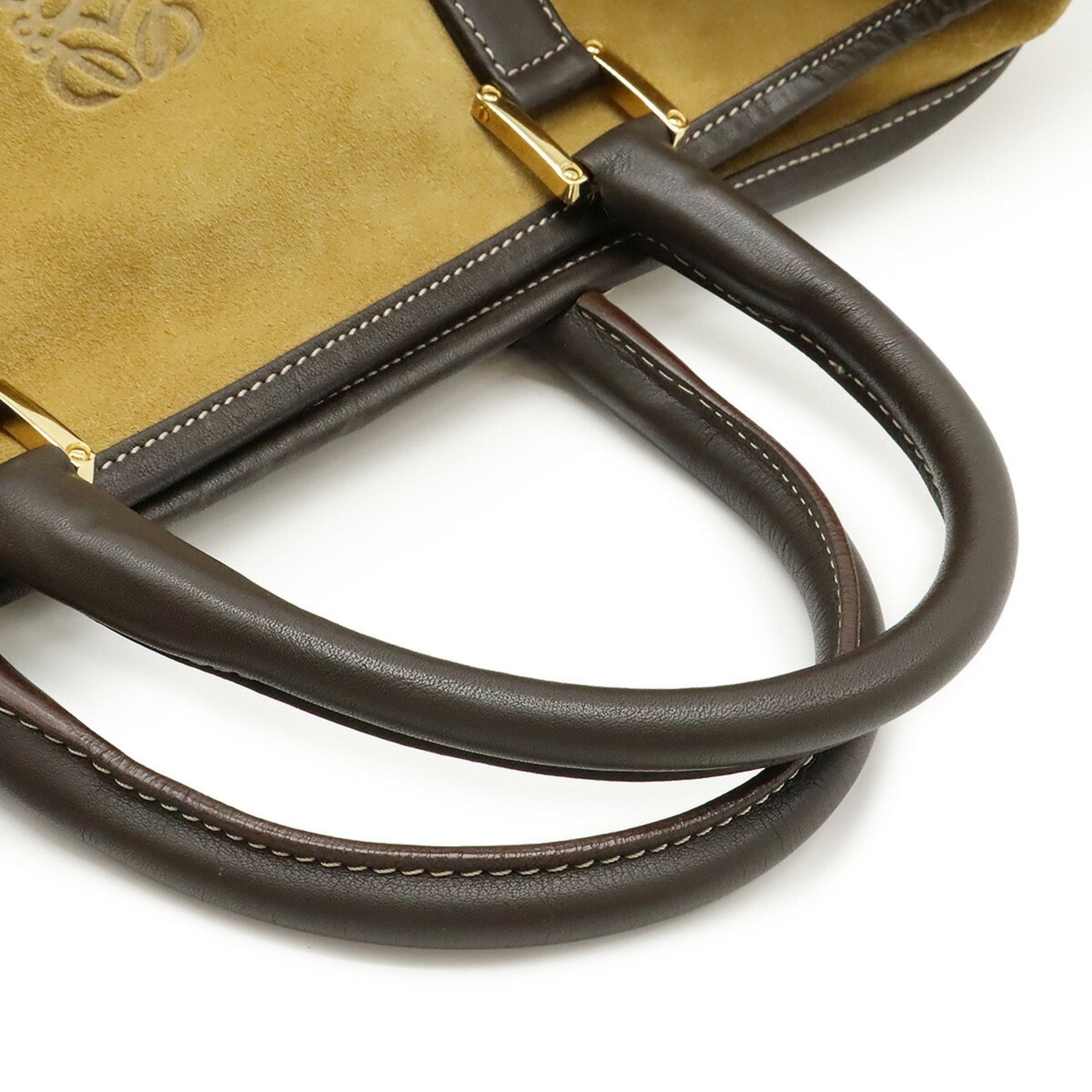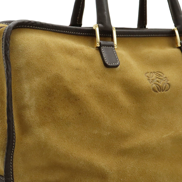 LOEWE Amazona 36 Handbag/Travel Bag in Suede and Leather, Khaki Beige Dark Brown