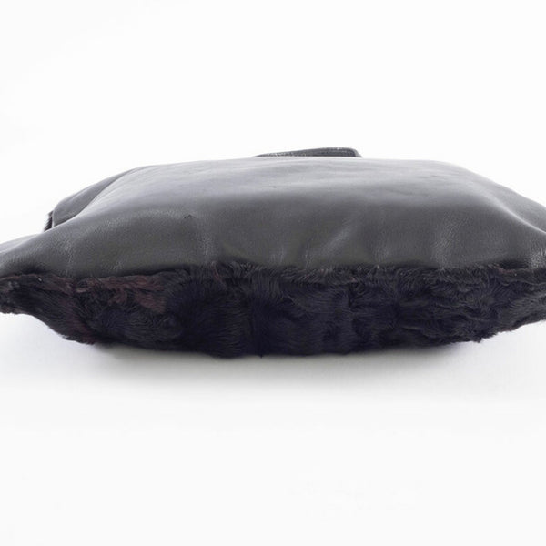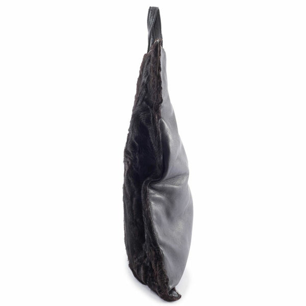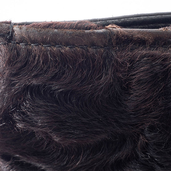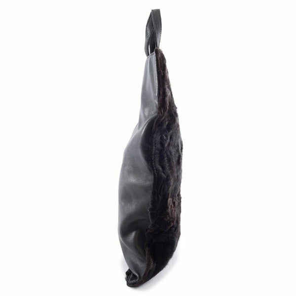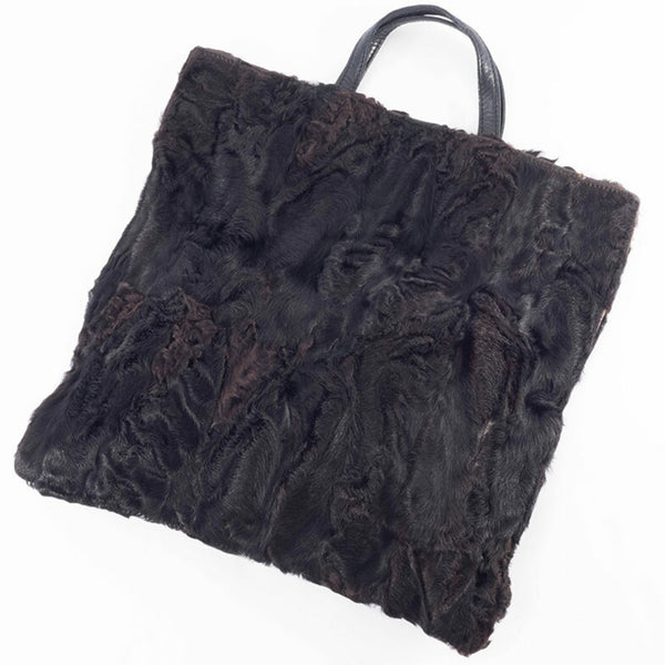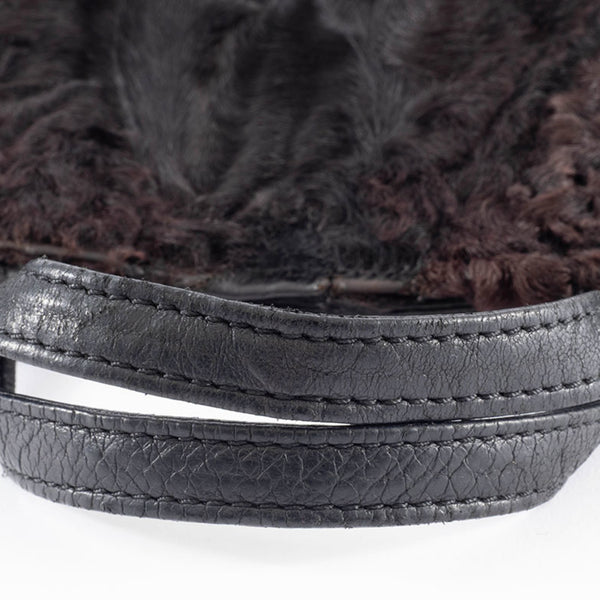 LOEWE fur handbag, leather, black and brown, women\'s lamb tote bag.