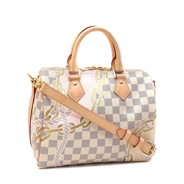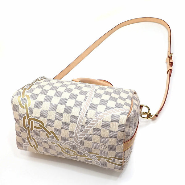 Louis Vuitton Damier Azur Speedy Bandouliere Handbag, Size 25, Women\'s, N40473, Nautical Rope Chain Print