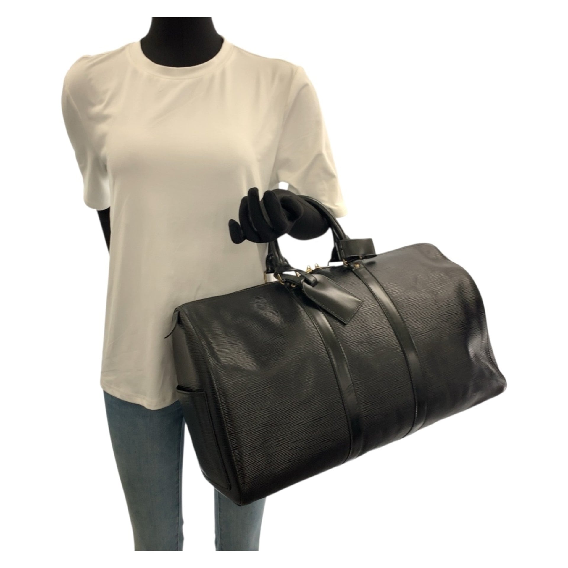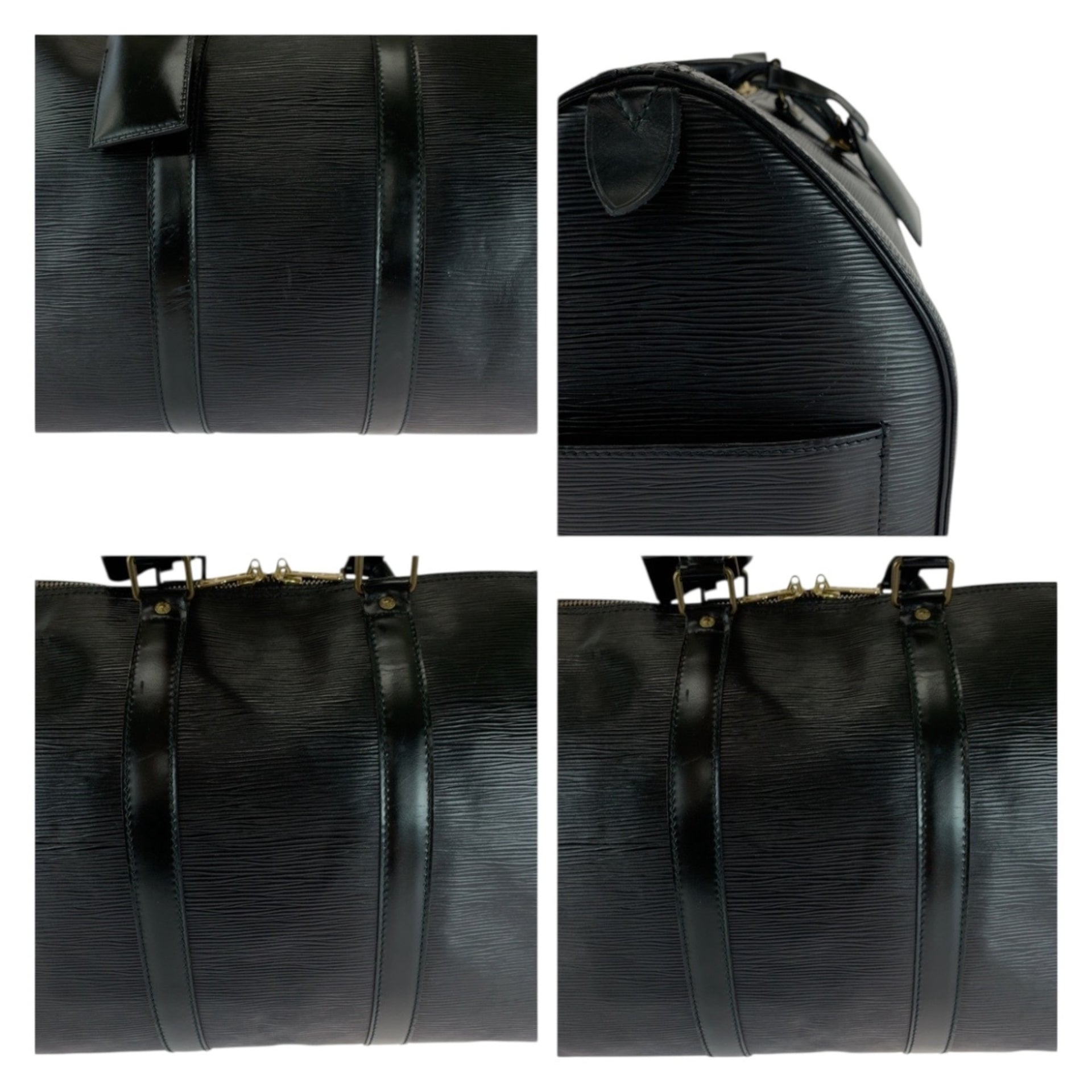 LOUIS VUITTON Epi Keepall 45 Noir Black with Gold Hardware and Leather, M59062, Men\'s Handbag/Boston Bag