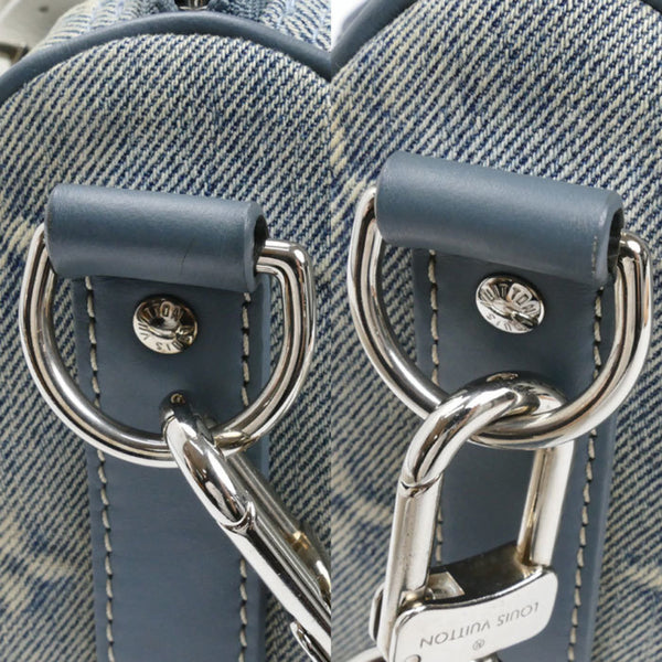 LOUIS VUITTON Louis Vuitton Keepall Bandouliere 25 2-Way Handbag in Monogram Denim, Blue, M22762, with IC Chip, Women\'s