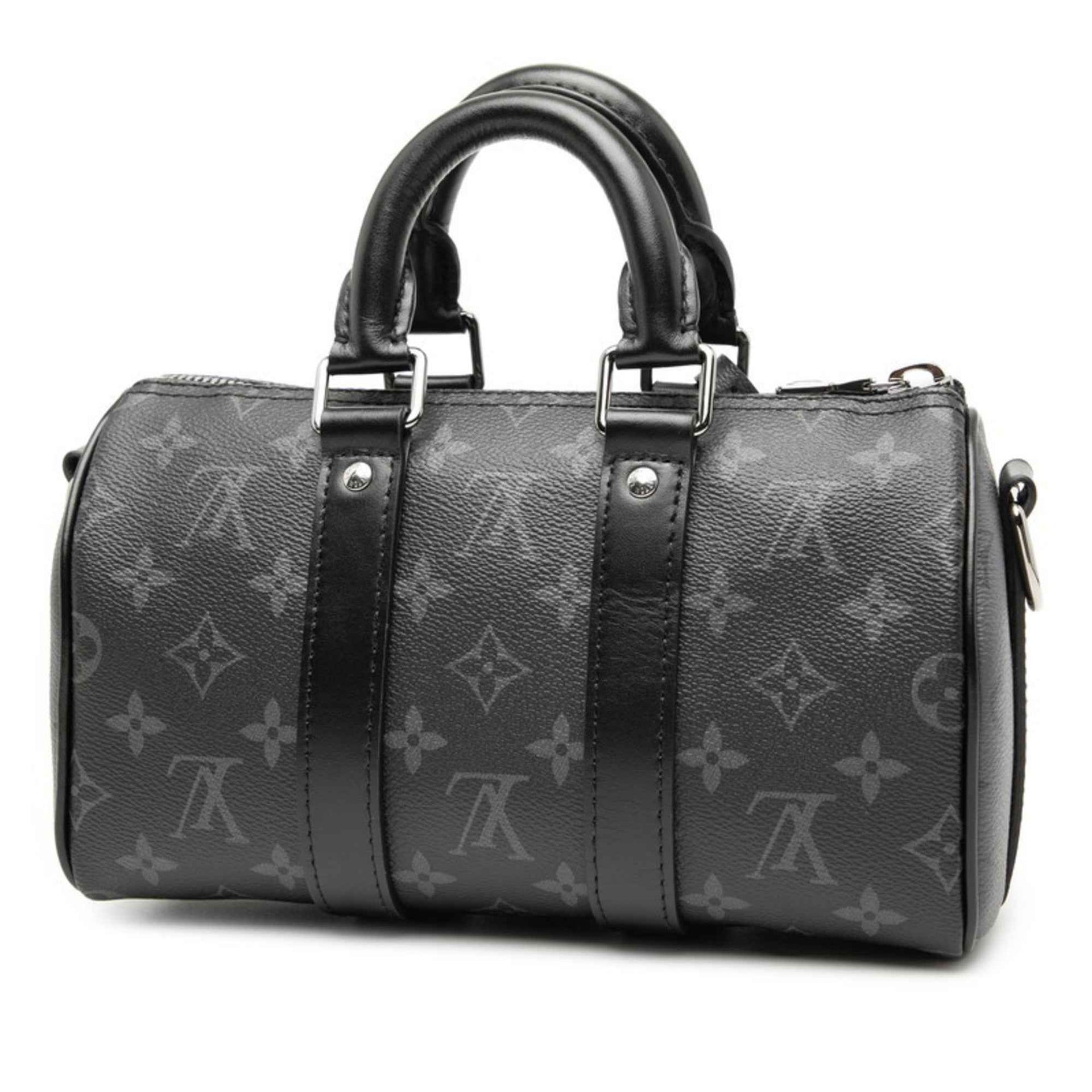 Louis Vuitton Monogram Eclipse Reverse Keepall Bandouliere 25 Handbag/Shoulder Bag, 2-Way, M46271, Black Leather, Women\'s, LOUIS VUITTON