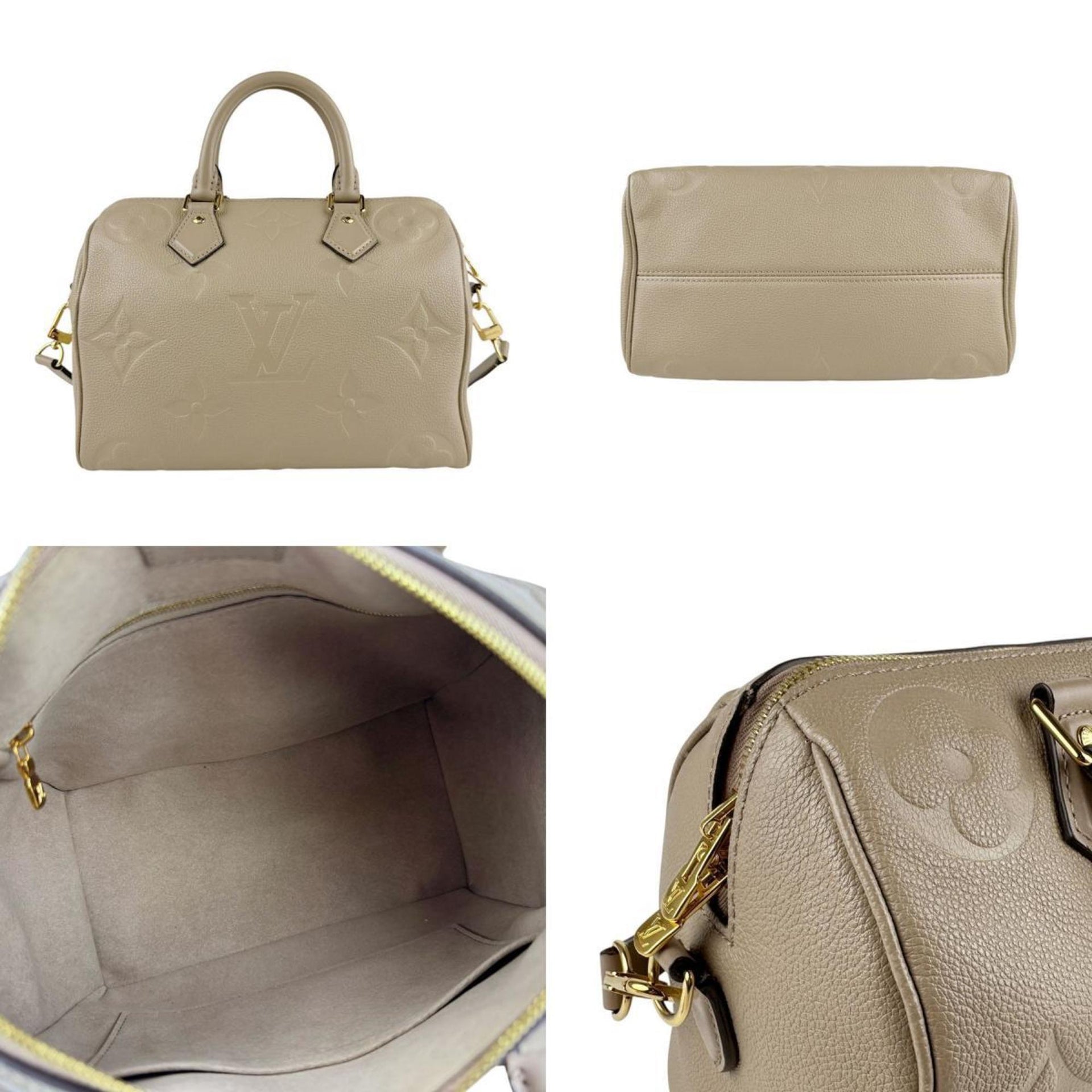 Louis Vuitton Monogram Empreinte Speedy Bandouliere 25 Handbag Shoulder Bag in Greige and Gold, Women\'s, M59273 z6893