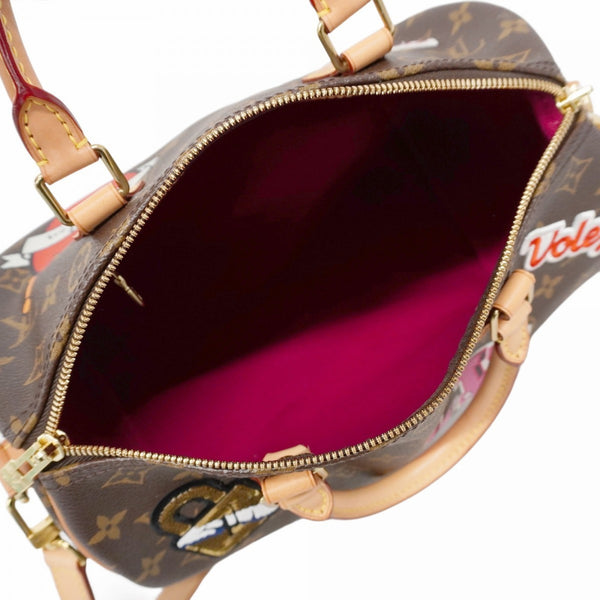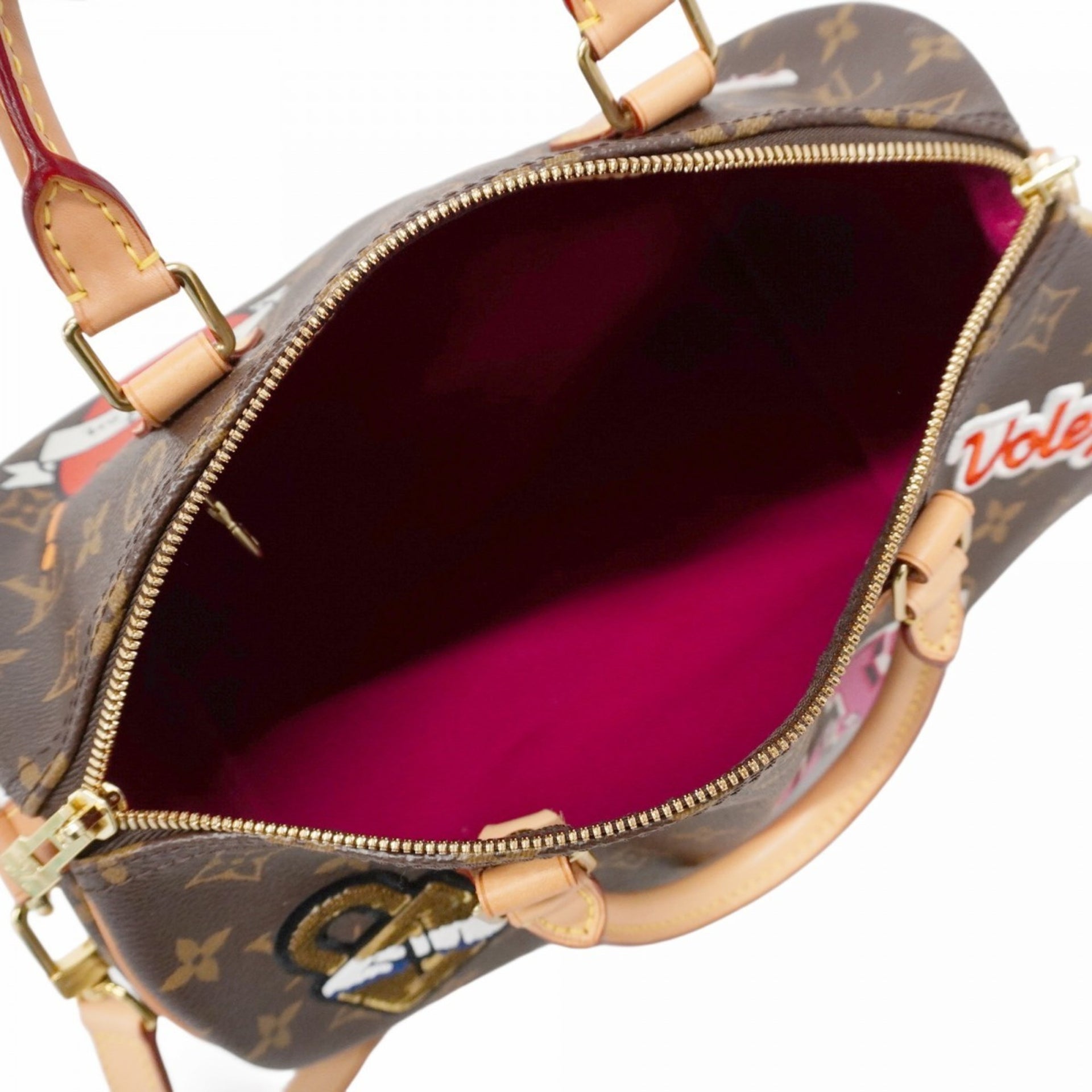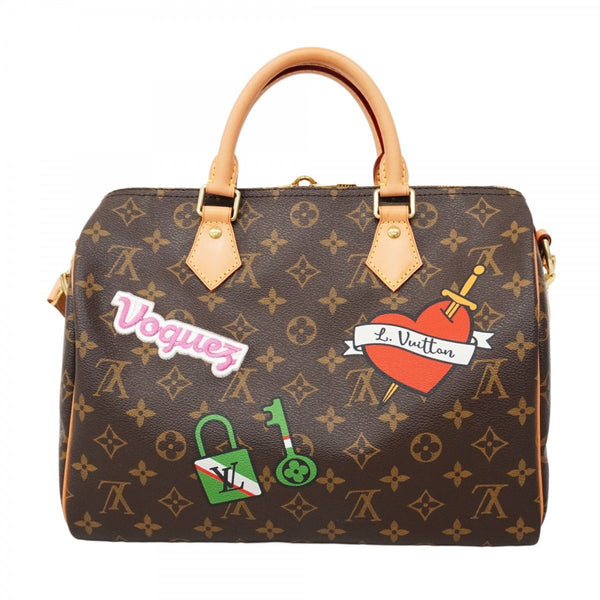 Louis Vuitton Monogram Patches Handbag LV Stories Speedy Bandouliere 30 M43989 Brown 2-Way Bag for Women