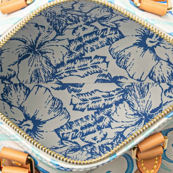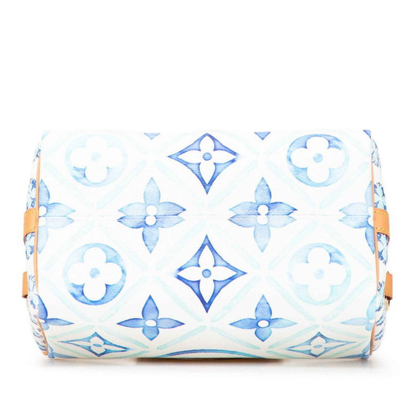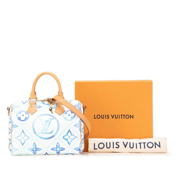 Louis Vuitton Monogram Tile Speedy Bandouliere 25 Handbag/Shoulder Bag, 2-Way, M11264, White with Lagoon Blue Leather, Women\'s, LOUIS VUITTON