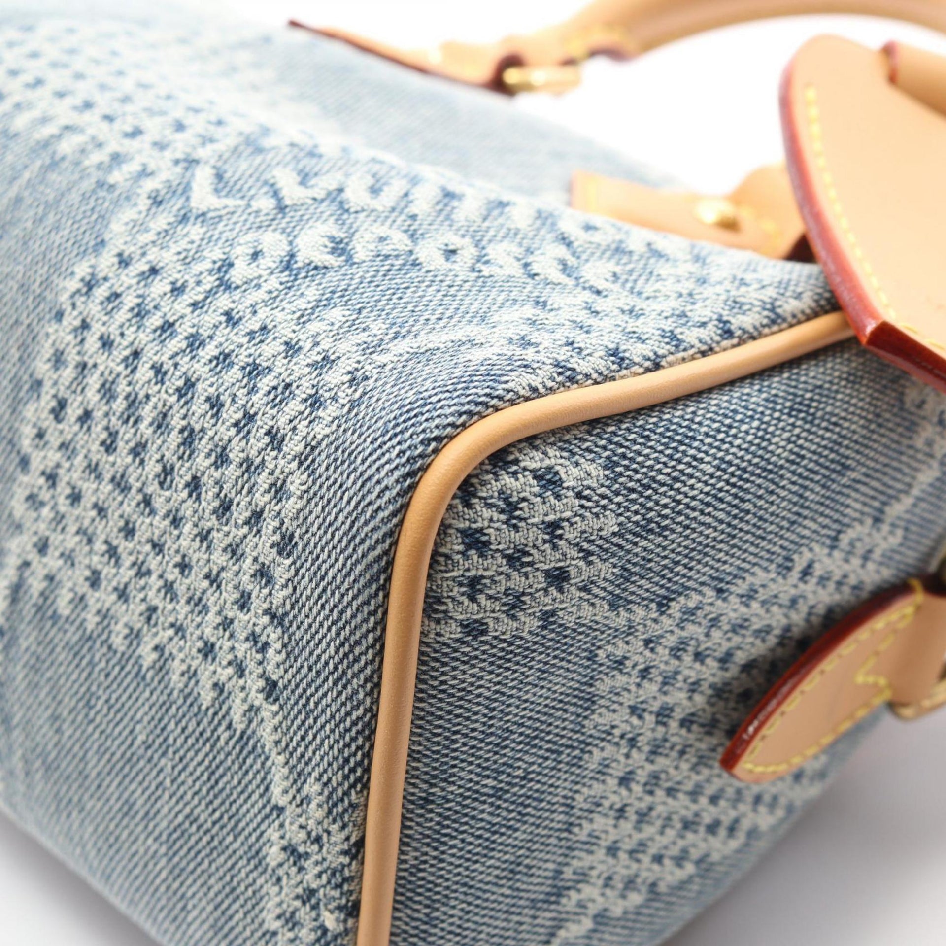 Louis Vuitton Speedy Bandouliere 18 Handbag, Denim Leather, Damier Denim, Men\'s, Blue/Brown, N40682