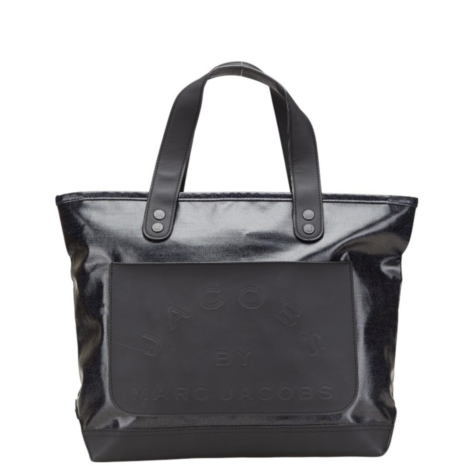 Marc Jacobs logo tote bag, handbag, black leather, women\'s, MARC JACOBS
