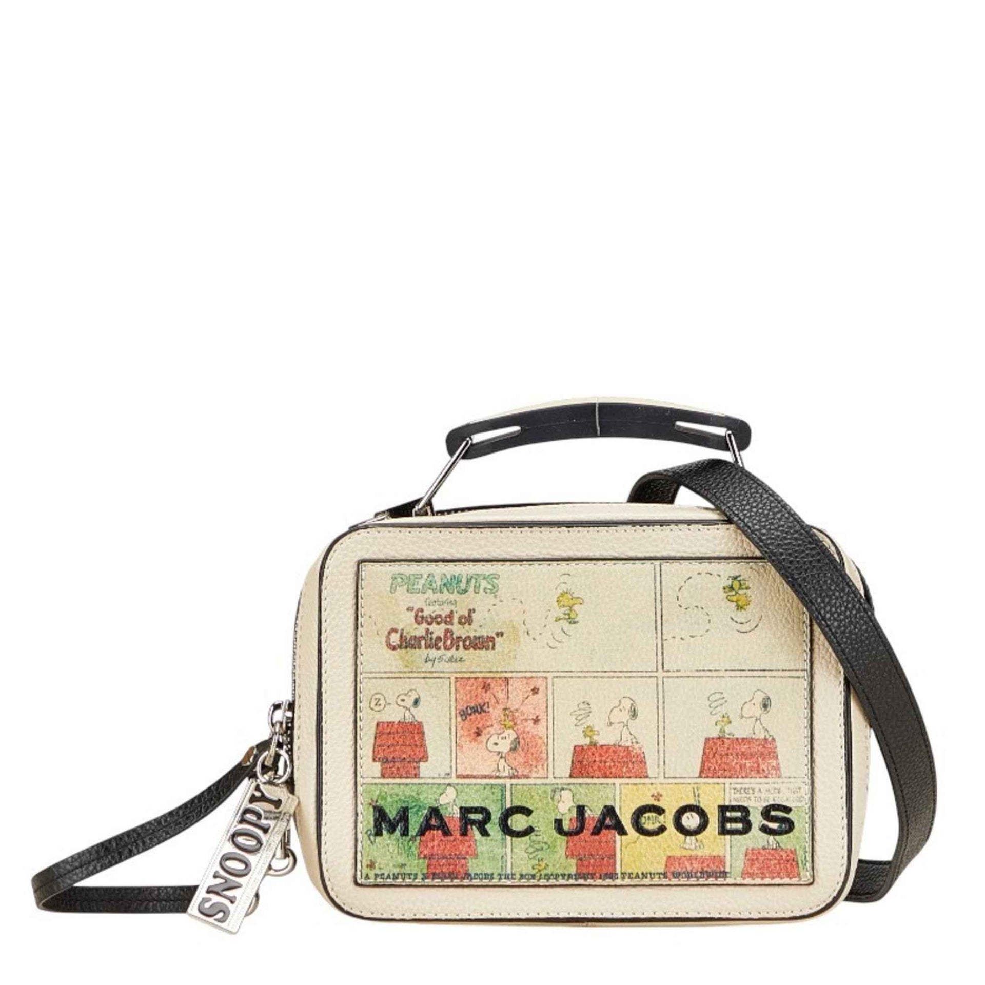 Marc Jacobs x Peanuts Snoopy The Box Handbag/Shoulder Bag, 2-Way, Beige/Black Leather, Women\'s, MARC JACOBS