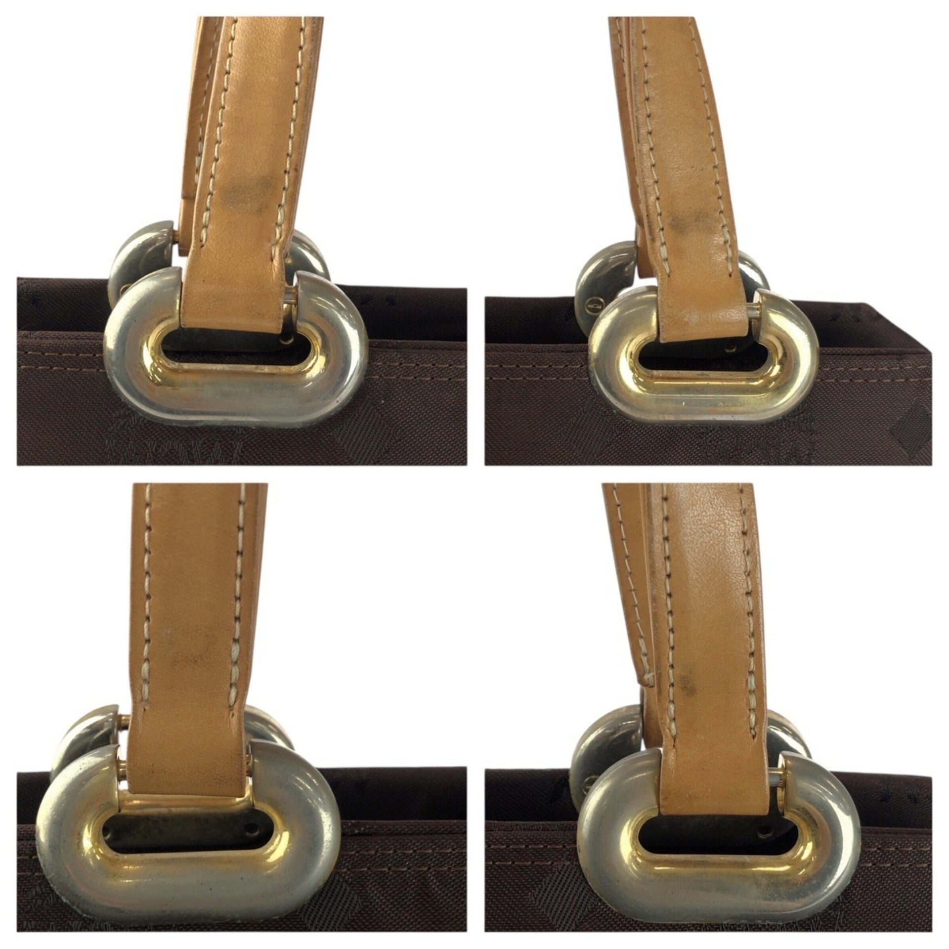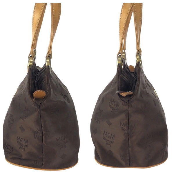 MCM Brown Gold Hardware Nylon Leather Tote Bag 161004 Women\'s Handbag