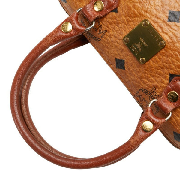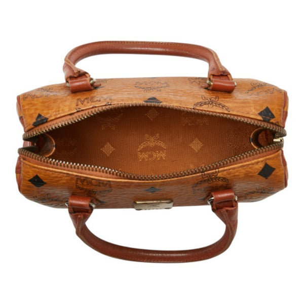 MCM Visetos Logogram Handbag/Mini Boston Bag in Brown PVC and Leather for Women