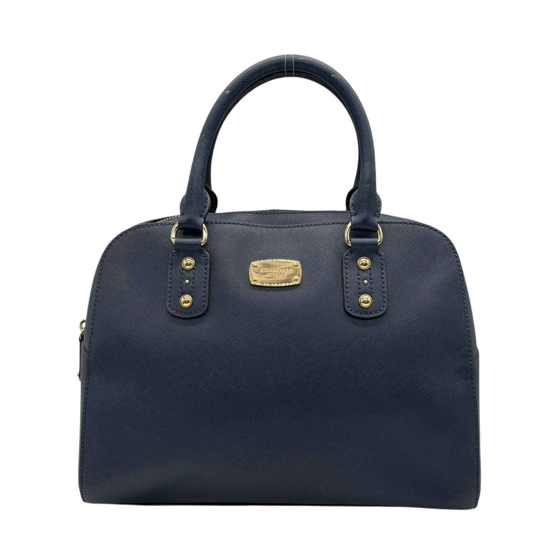 MICHAEL KORS 2-Way Handbag/Shoulder Bag, Navy Leather, Gold Hardware, Logo, Crossbody, Women\'s, T3