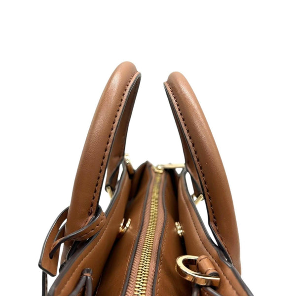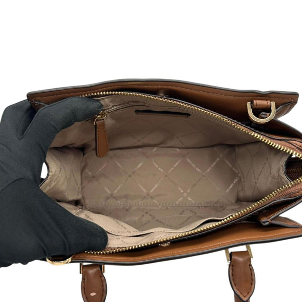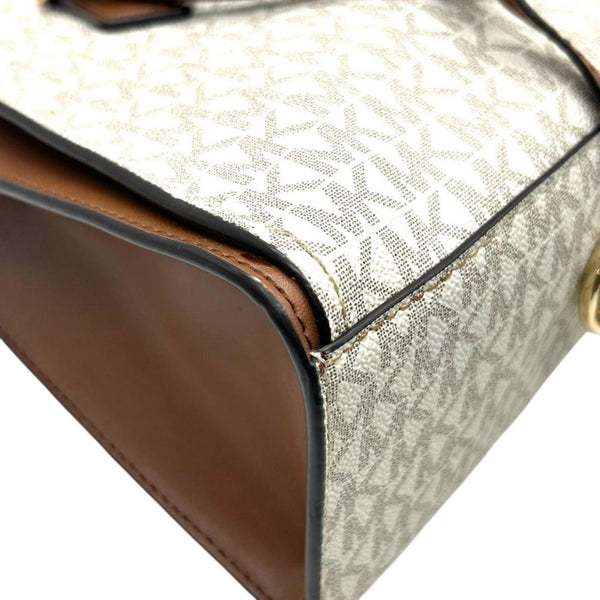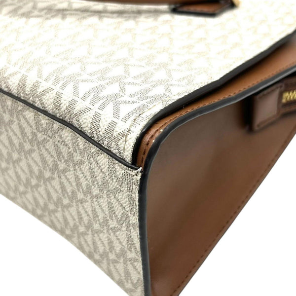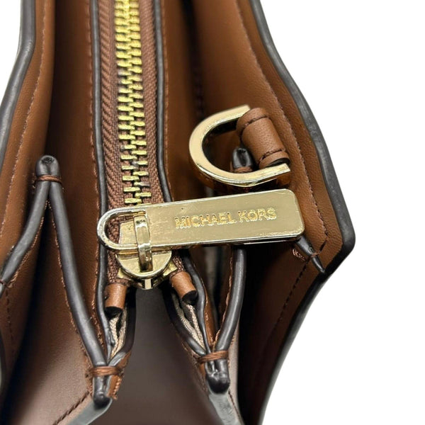 MICHAEL KORS 2-Way Handbag/Shoulder Bag with Signature MK Logo Charm, Brown/Beige Leather Gold Hardware, Women\'s, Size s71
