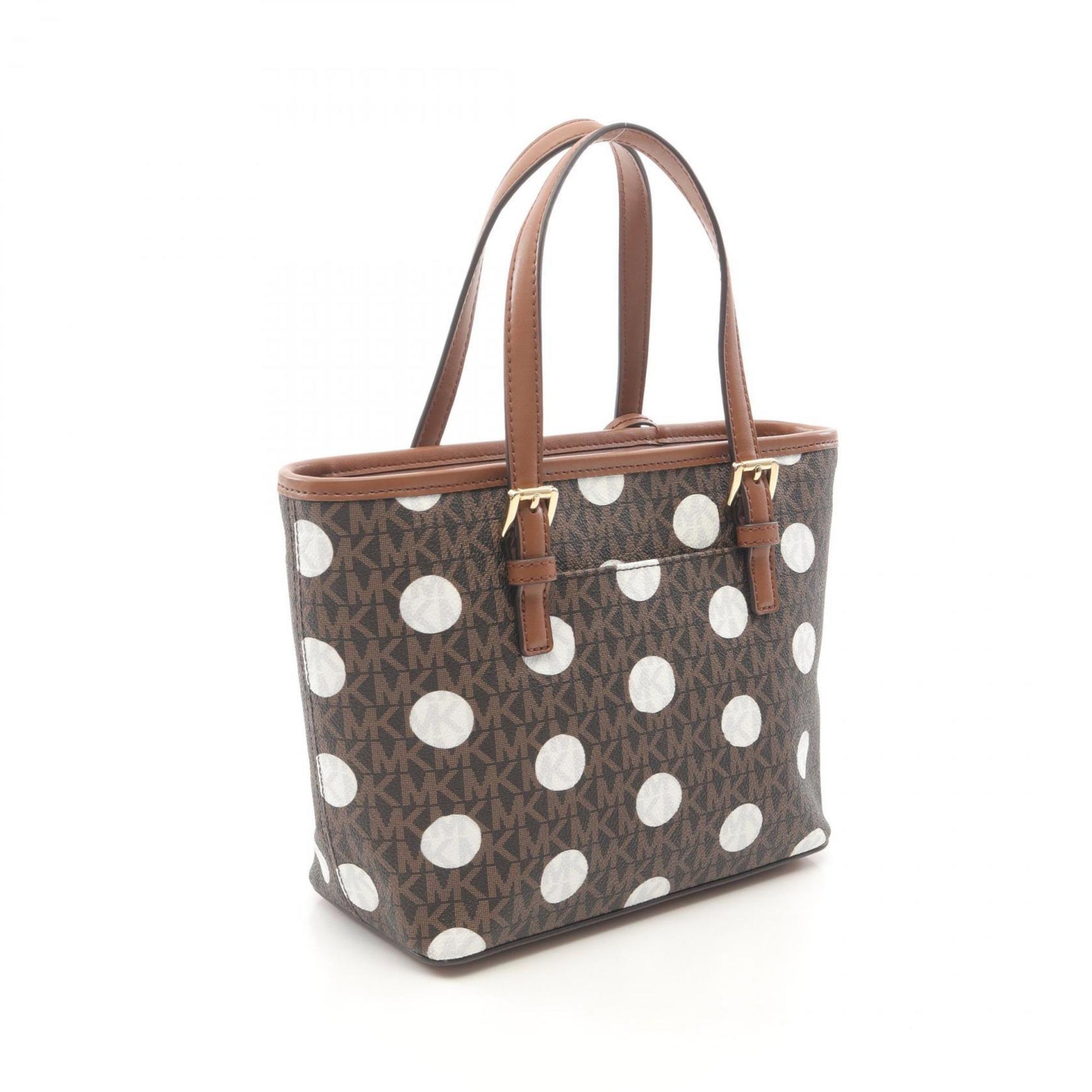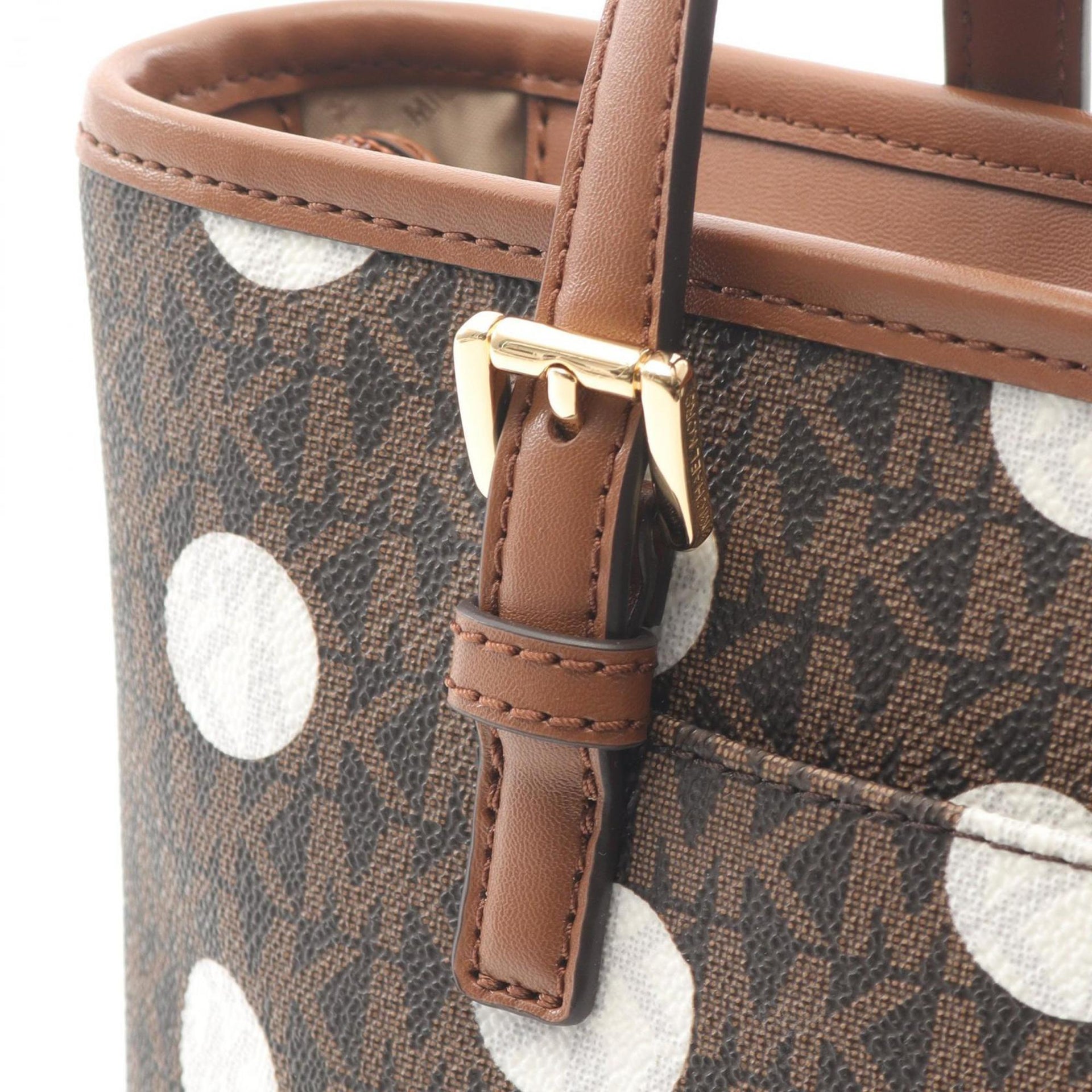 Michael Kors JET SET TRAVEL Signature Polka Dot Handbag in PVC-Coated Canvas and Leather, Brown/White, 35S5GTVT0O
