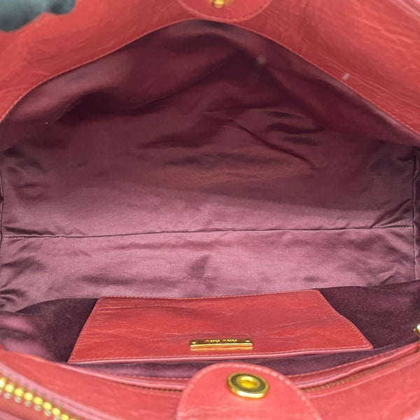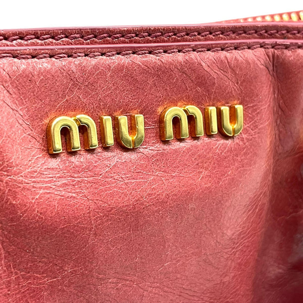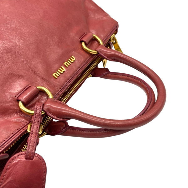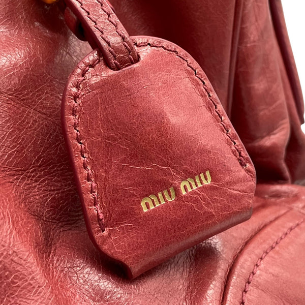 Miu Miu Miu VITELLO SHINE 2-Way Red Tote Bag K5, a pink leather handbag and tote bag.