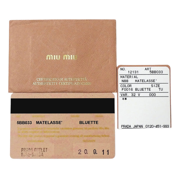 Miu MIUMIU Bag Women\'s Brand Handbag Shoulder 2-way Matelasse Leather Navy 5BB033 Blue